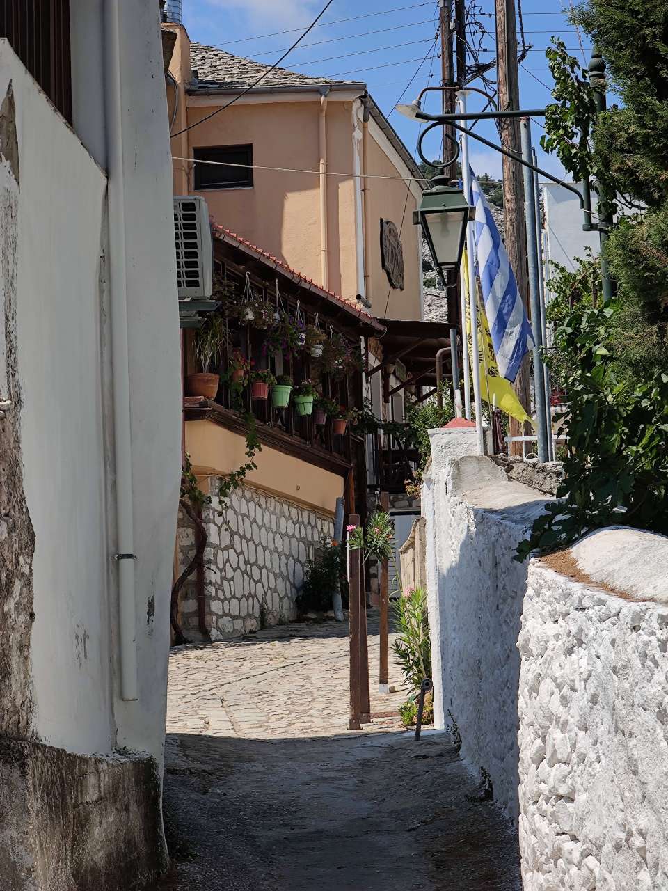 Case din piatră cu acoperiș din ardezie, taverne, magazine cu suveniruri, piețe cu platani, din nou, taverne și cafenele, frumos. Măsline deshidratate, ulei de măsline, dulcețuri de nucă verde, de smochine sau de portocale (delicioase de altfel), trei spârcuri de rahat în cutii supradimensionate pentru a păcăli, magneți etc etc etc.