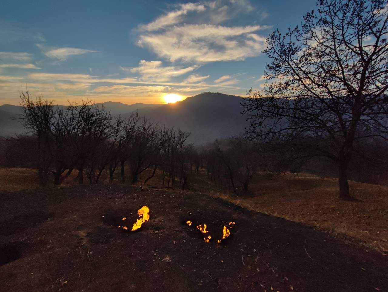 Câteva flăcări aprinse ardeau molcom, nu foarte spectaculos, dar îndeajuns pentru a ne satisface curiozitatea și pentru a recompensa efortul depus la urcare. Singuri, noi și Focul Viu…