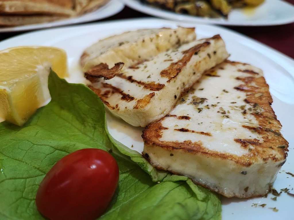 … nelipsita brânză Haloumi la grătar… un pic sărată, un pic elastică, așa cum trebuie să fie…