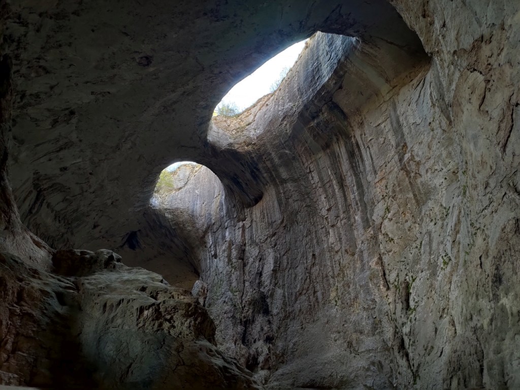 Peștera Prohodna, ca să vezi ochii lui Dumnezeu și să te plimbi pe cărare prin pădure până la schitul Sf. Marina, săpat în stâncă.