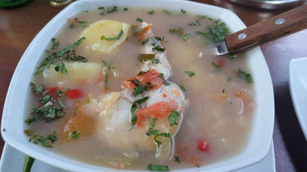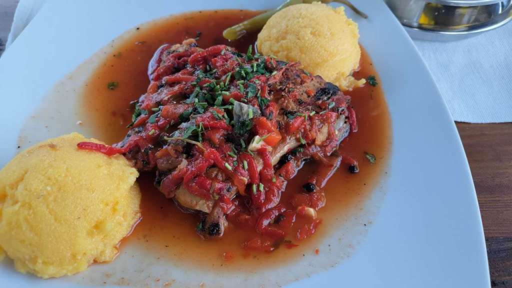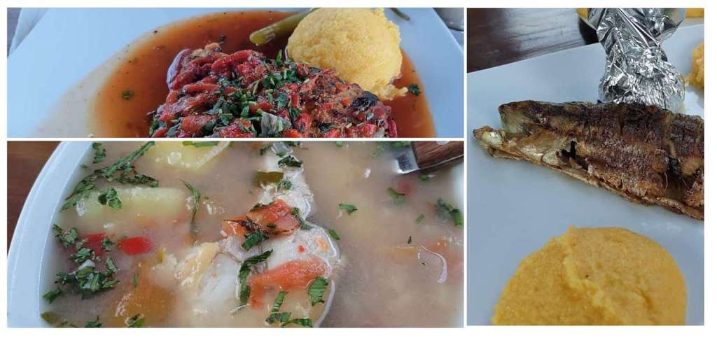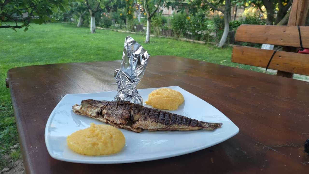 Noi am mâncat scrumbie prăjită, cu mămăliguță și mujdei, o delicioasă ciorbă de pește ca la mama ei în Deltă, dar și o saramură de crap cu mămăliguță de ne-am lins pe degete. În ziua în care am plecat se pregăteau sărmăluțe din pește…