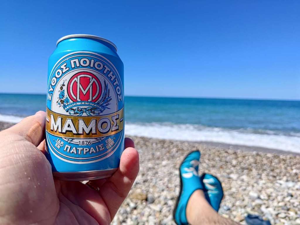Chiar de lângă portul din Mytikas începe plaja Monolithi, cea mai lungă din Europa, care are nu mai puțin de 22 de kilometri și pe care sunt amenajate destule beach bar-uri, în caz că micuța plajă din fața farului este prea sălbatică pentru gustul vostru. Pentru noi nu este, așa ne plac plajele, sălbatice.