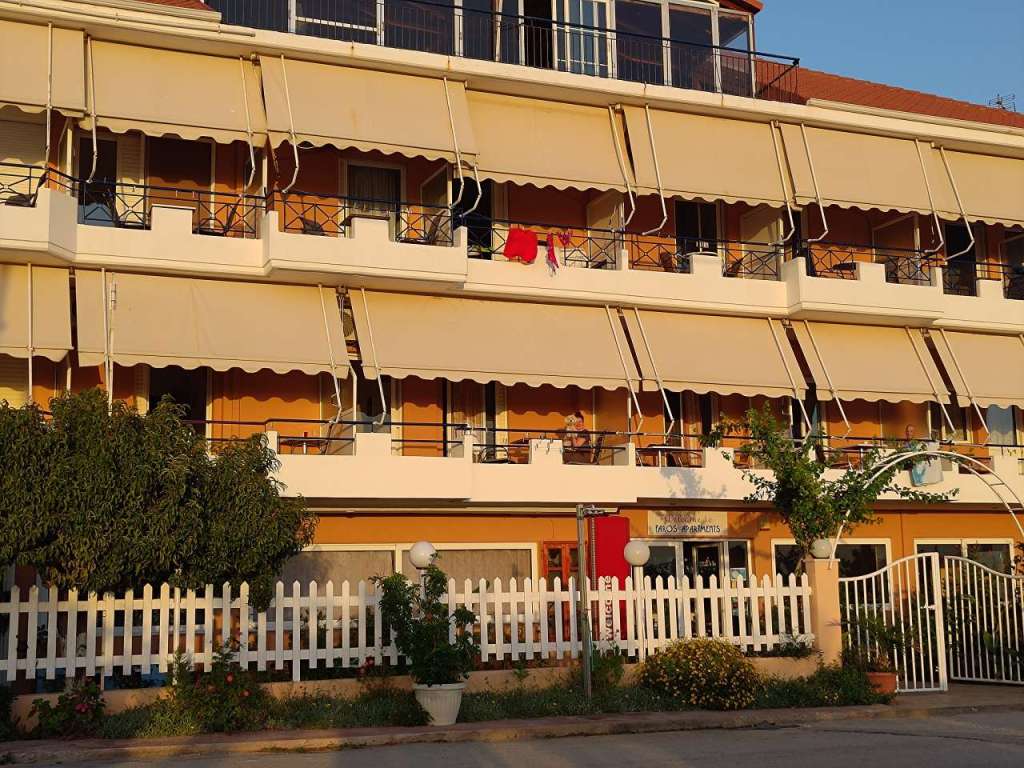 Stăm de fiecare dată la Faros Apartments, unde Dimitris ne-a fost și ne este o gazdă primitoare și gata întotdeauna de ajutor. Prețuri rezonabile, apartament cu vedere la mare, cu balcon pe care să-ți petreci diminețile la o cafea, sau apusurile alături de un tsipuro, un ouzo sau un vin bun. Ce poate fi mai perfect? Mai plăcut?