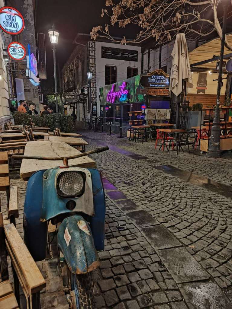 Și, la lumina electrică a nopții, parcă este un pic mai frumos. Întunericul estompează, ascunde, clădirile sale vechi și părăginite, tot mai multe și mai lăsate de izbeliște. Nu știu cum avem ătupeul să ne lăudăm cu un centru plin de clădiri neîngrijite, derăpănate, multe dintre ele pustii și cu obloane sparte la ferestre, și care ar trebui degrabă readuse la măreția lor de altădată.