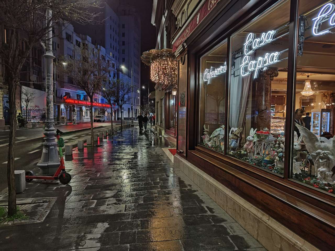 Așa m-am plimbat în Vinerea Mare, după o ploicică care era să mă trimită direct la metrou. Dar am stat adăpostit sub o streașină aștepând să treacă. Apoi, pe străzile ude, care reflectau lumina electric colorată, am luat-o ușor la pas din Piața Victoriei și până la Piața Unirii, pe Calea Victoriei, printre străduțele din Piața Amzei, apoi prin Centrul Vechi. Privind la un oraș ce poate fi și mai frumos.