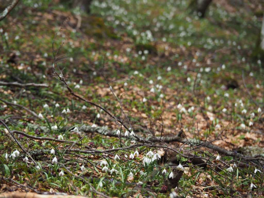 Și, pe lângă drumul forestier, ne-a primit așa cum se cuvine primăvara montană, cu poienile pline ochi de ghiocei și alte floricele, ba chiar am zărit și o capră neagră cu puii săi, cum nu am mai văzut până acum la o altitudine atât de joasă.