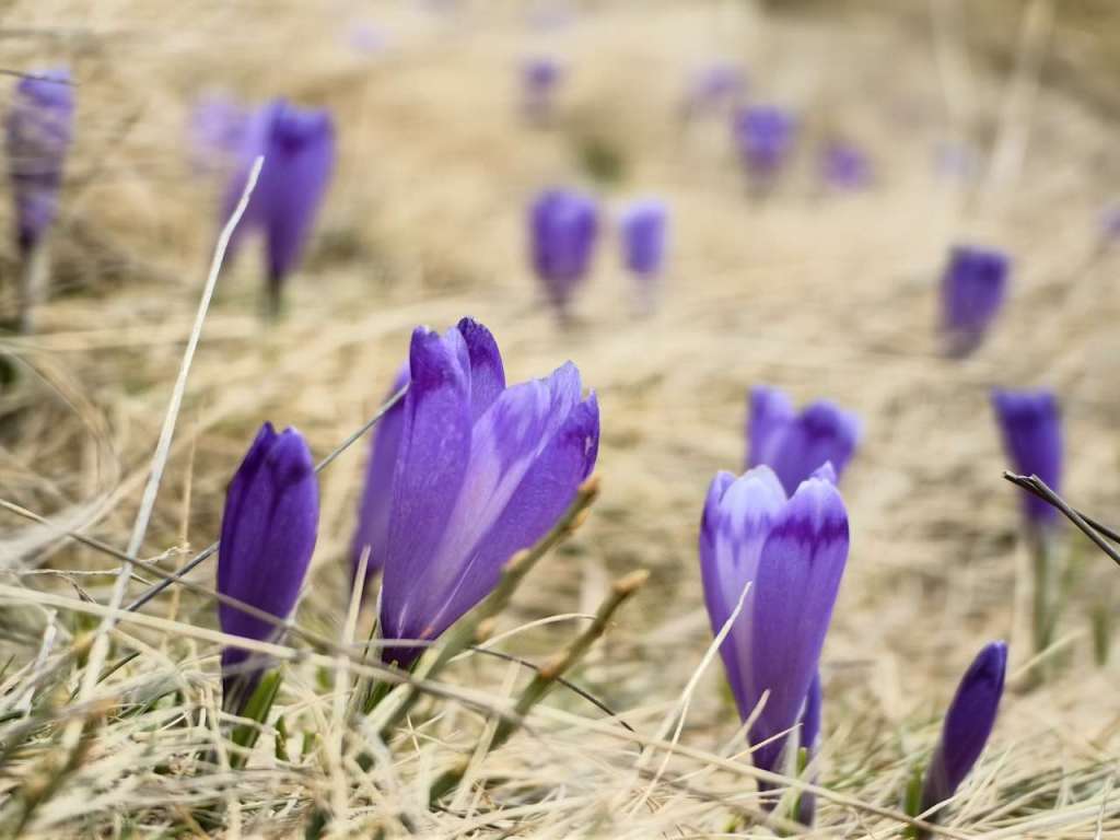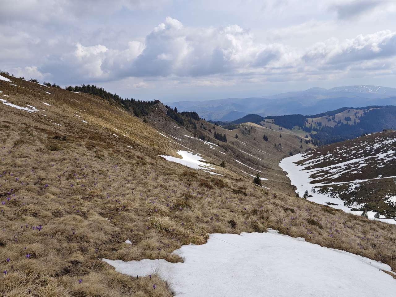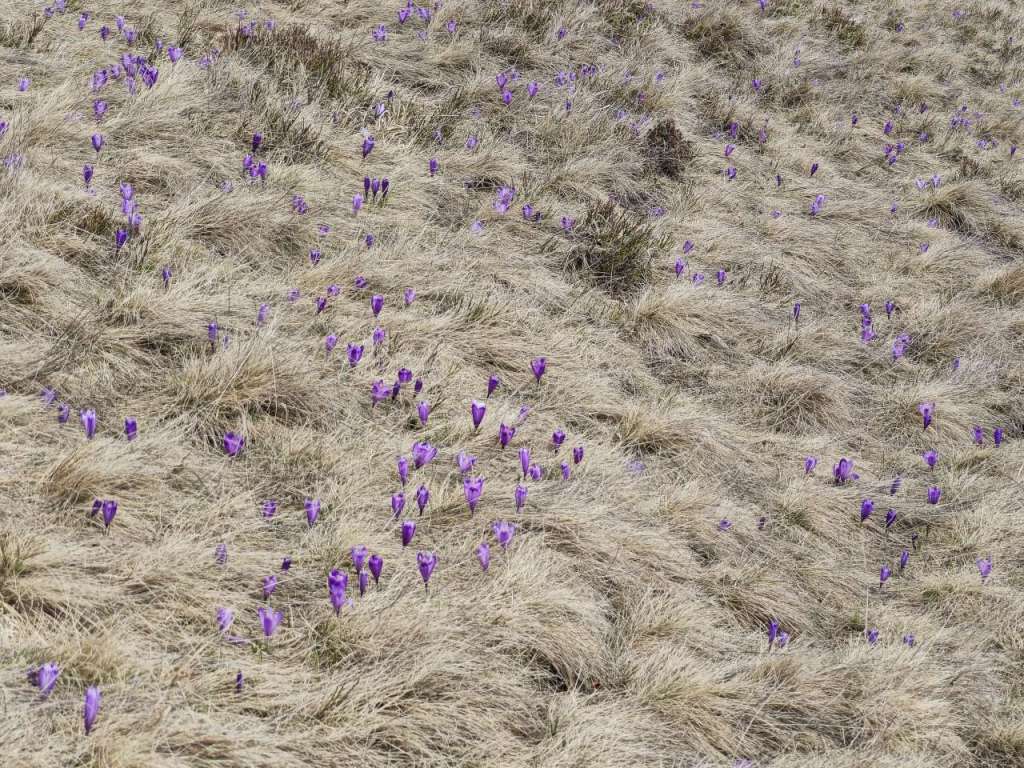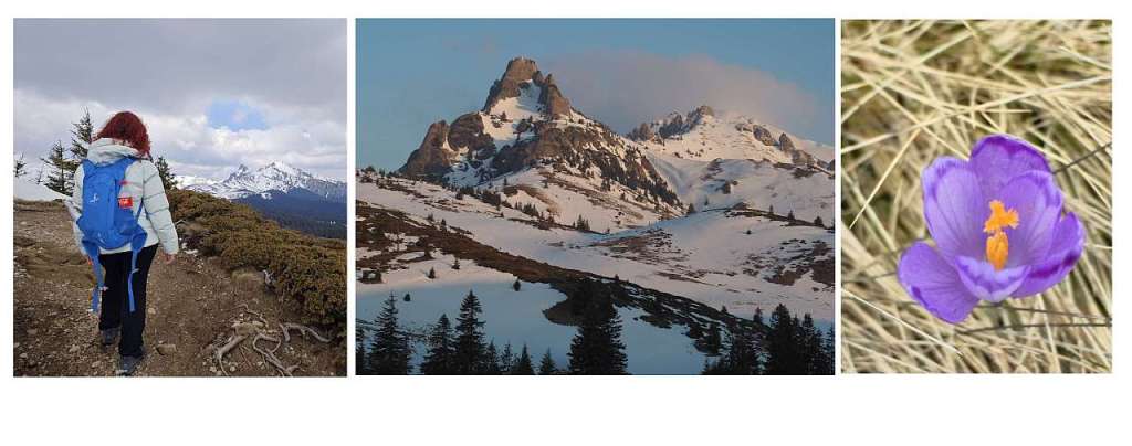 Zăpada nu foarte mare dar nici deloc, urcarea nu prea grea dar nici ușoară, am călcat pe urmele lăsate de alți turiști sau pe cele ale blănosului cu labe mari și gheare lungi, iar după aproape o oră ne bucuram de o poieniță plină ochi de brândușe cu petalele deschise pe șaua Gropșoarele.