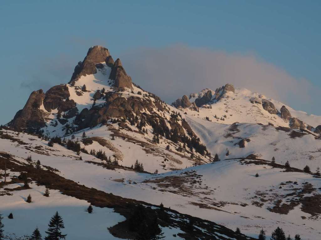 A doua zi m-am trezit foarte devreme, cu mult înaintea micului dejun, pentru a mă plimba puțin pe lângă cabană și mai ales către zona din care se văd Țigăile Mari și Vf. Ciucaș. Că, dacă în ziua cu pricina voiam să luăm la pas traseul spre Vf. Gropșoarele, mă rog, dacă se putea, în funcție de condițiile din teren, spre Vf. Ciucaș chiar nu aveam chef să mergem, prea mare panta, prea multă zăpadă, noi doi slab la nivel de echipare față de prietenii noștri care merg des pe munte iarna, etc…