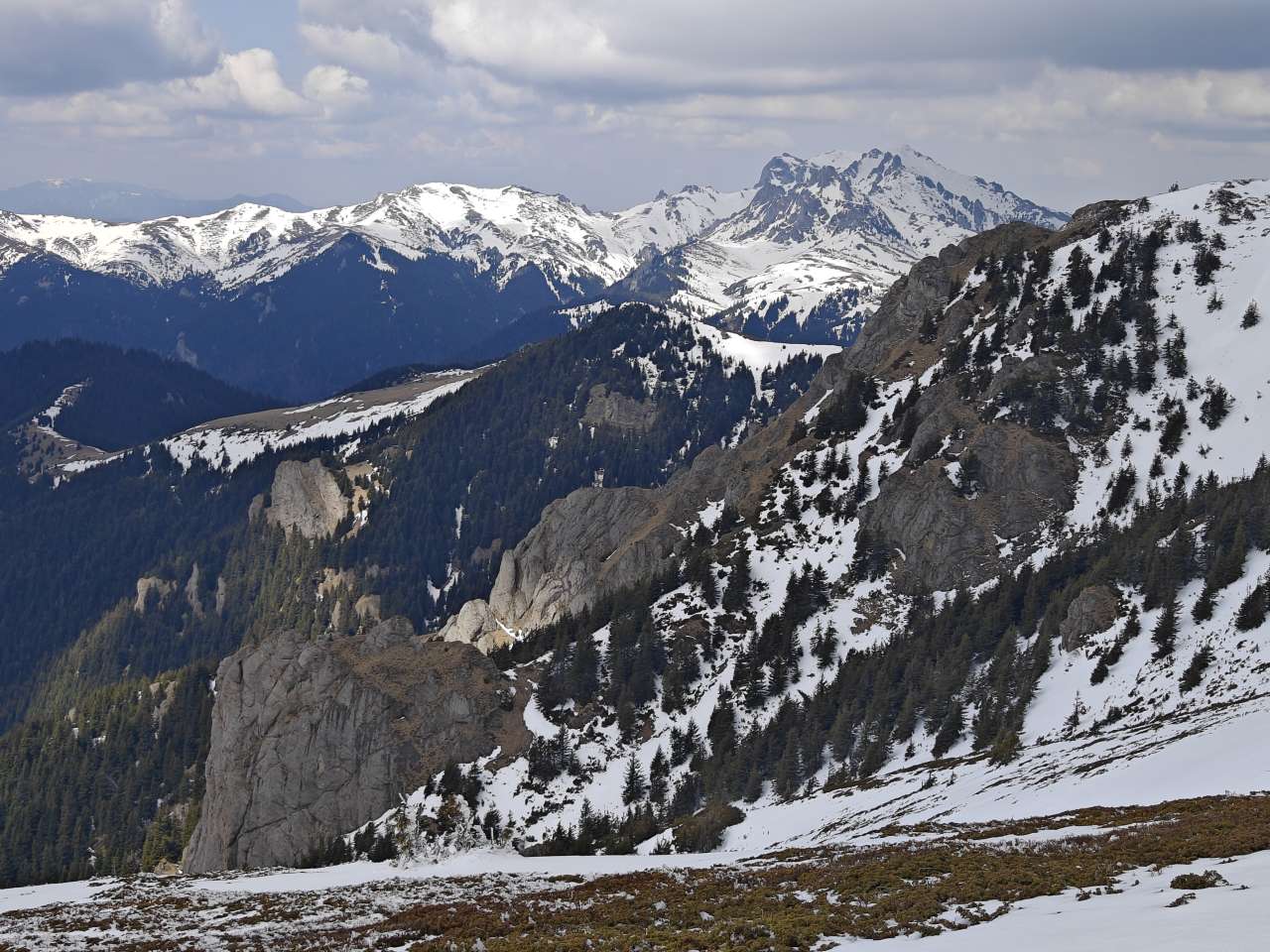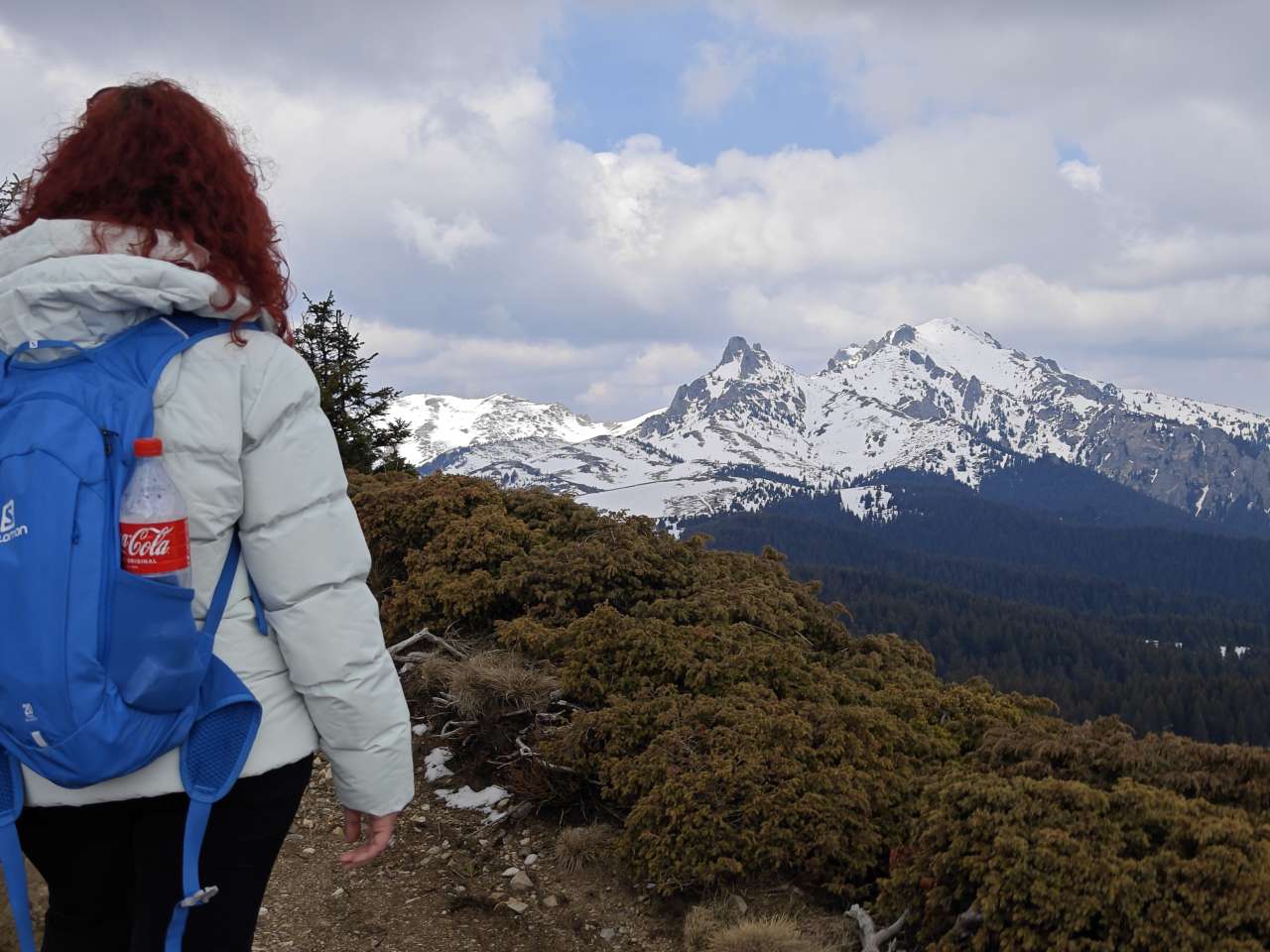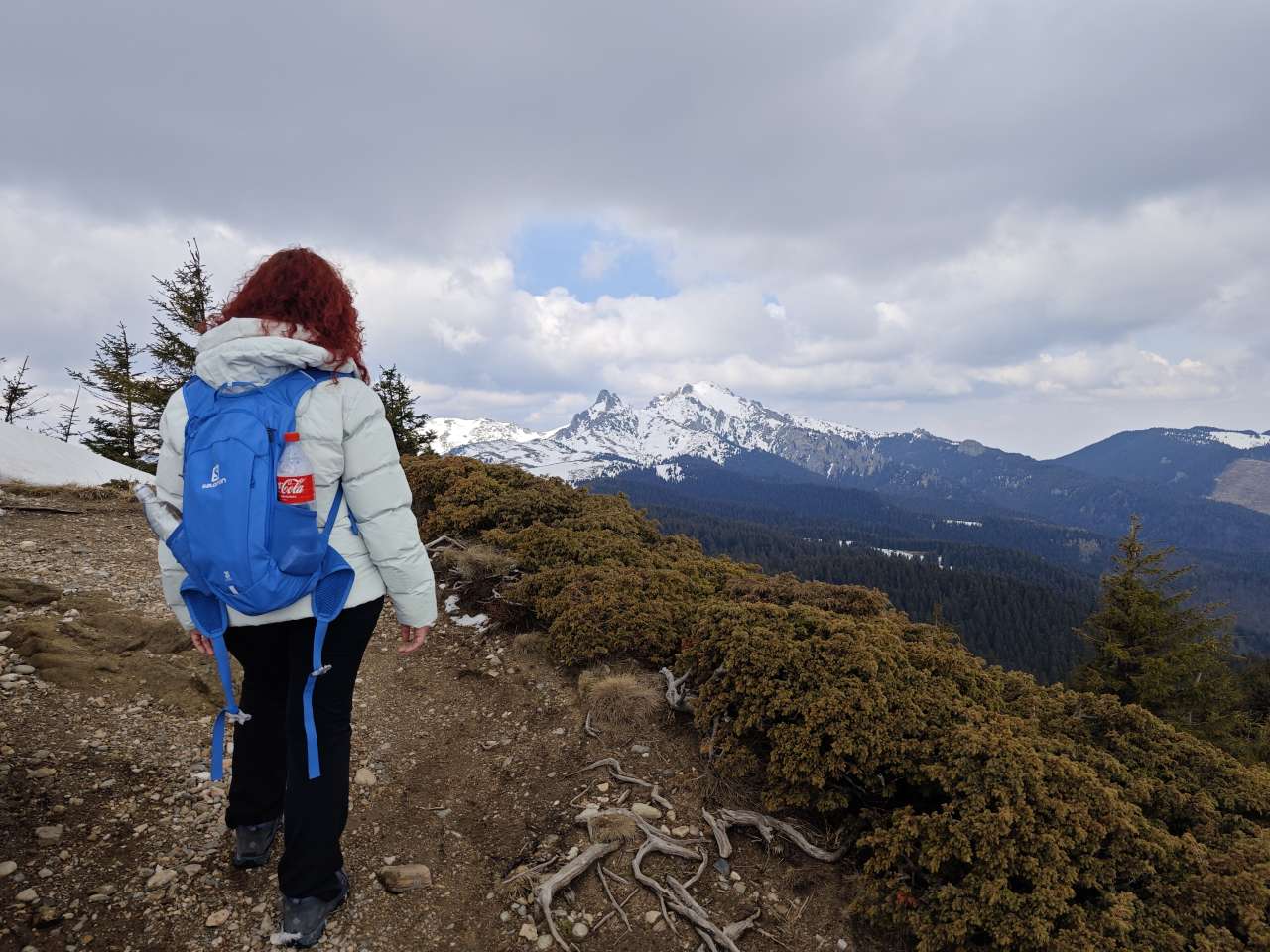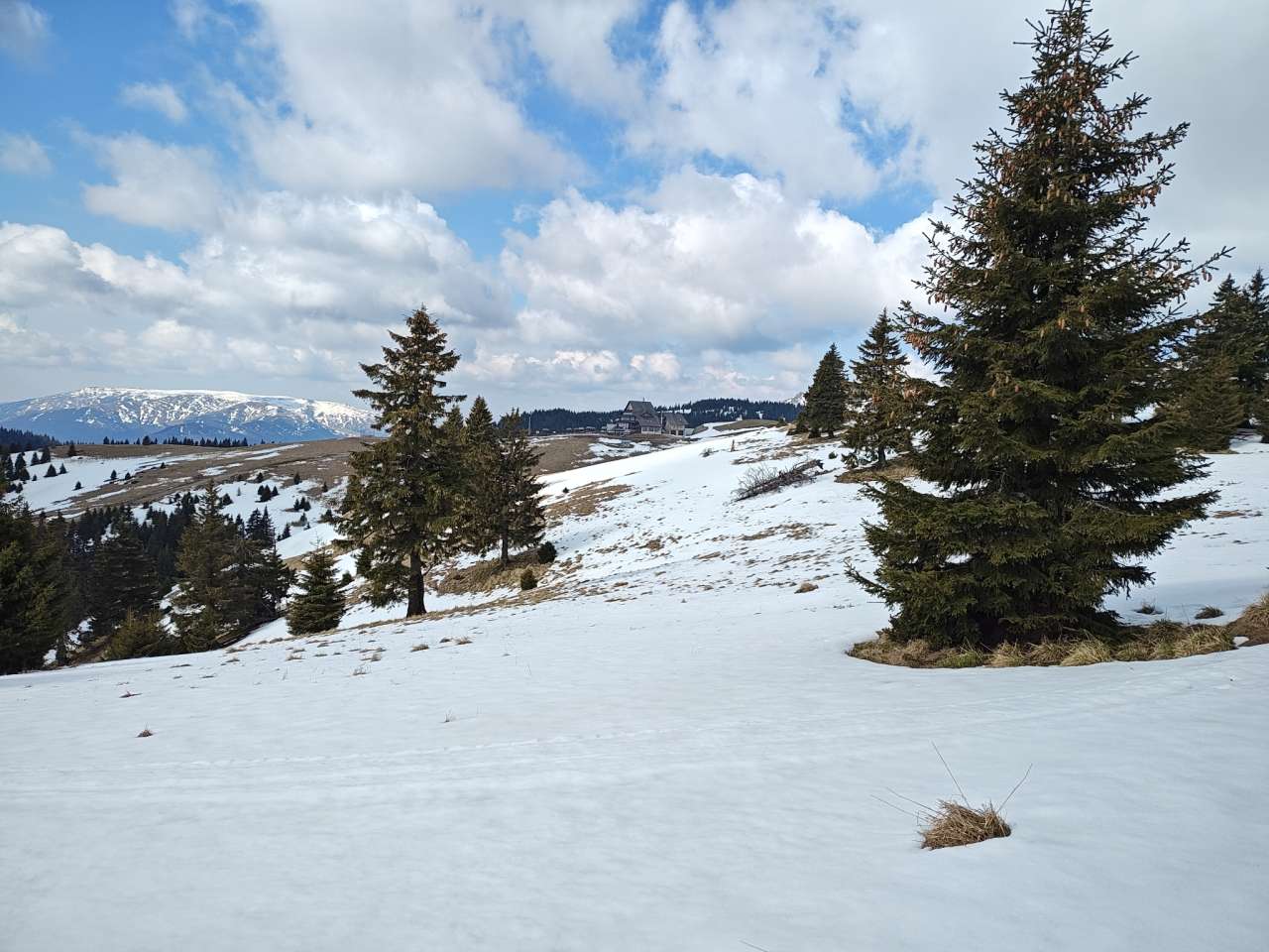 Noi doi am mers mai greu, așa că ieșiți din pădure, prietenii noștrii au luat-o la pas întins, noi ținându-le urma din ce în ce mai greu, pentru că sus pe culme zăpada a fost un pic mai adâncă, începuse să se înmoaie și pe multe porțiuni mă afundam din ce în ce mai mult iar efortul devenea tot mai asiduu.