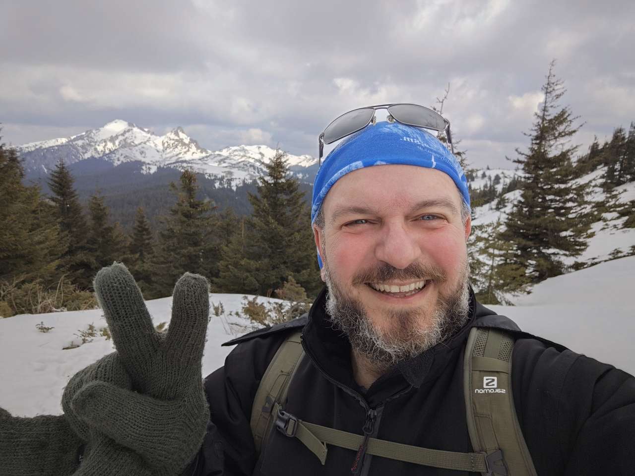 Așa că, am luat-o ușor înapoi, iar după aproape 4 ore și 40 de minute și peste 10km parcurși eram înapoi la căldura cabanei, nu înainte să ne prindă ninsoarea pe ultima porțiune a traseului. Ca să nu mai spun că zăpada se înmuiase tare și că efortul depus la fiecare pas a fost tot mai intens, iar niște alunecări urmate de căzături cât sunt eu de mare, deloc periculoase, au făcut deliciul acestei ture iernatice de primăvară.