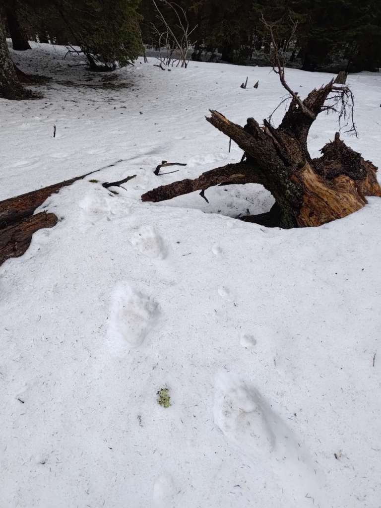 După aproape 15 minute, la intrarea în pădure am văzut cum cărarea pe care mergem este cea folosită și de Moș Martin, urme mai vechi, altele mai proaspete, o fericire, ce să mai. O pereche dintre noi a renunțat, speriată pesemne, eu am scos spray-ul contra urșilor că, cine știe, după cum îmi zicea amicul Alex Radescu pe Facebook ulterior, nu prea aveam chef să fac vreun selfie cu dânsul.