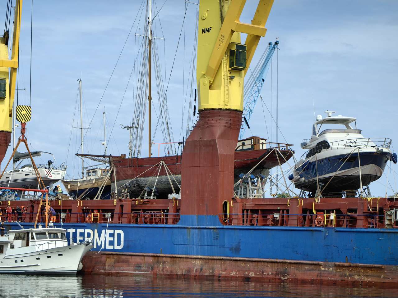 Nu înainte a constata cum se aduc unele ambarcațiuni de peste oceane, practic pe un cargobot imens cu macarale… Îmi închipui cum un miliardar sau mare mahăr sună și spune că vrea să se dea cu yacht-ul în Grecia vara asta și cum omul său de încredere, cu un yes boss categoric, îl și antamează la transport. Ce să faci, unii își permit și mofturi d-astea, ca de la lună la cer pentru noi muritorii de rând…