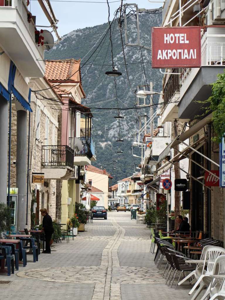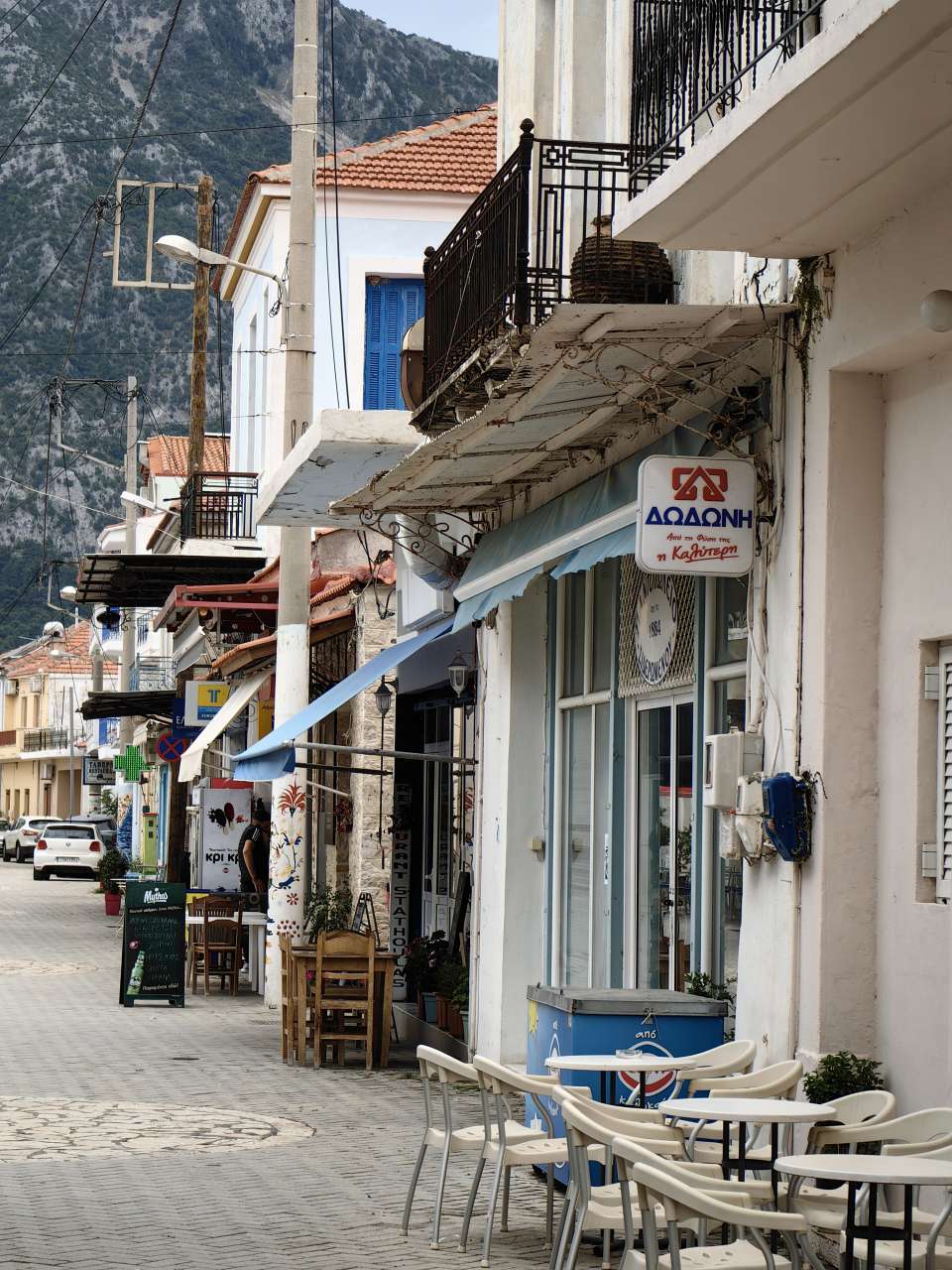 La orele amiezii, când am ajuns prima dată în Mytikas, am găsit un sătuc pe jumătate amorțit, la siestă cred, cu străduțele aproape goale și magazinele pustii, totul într-o atmosferă relaxată de weekend.