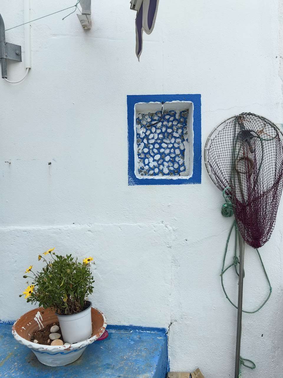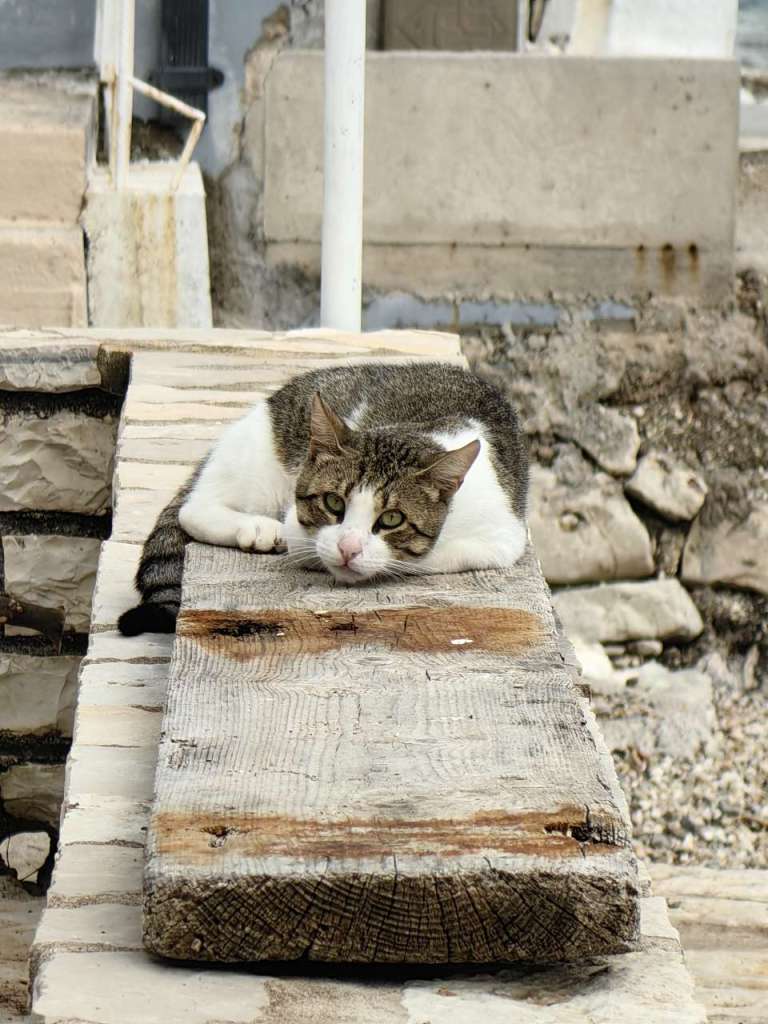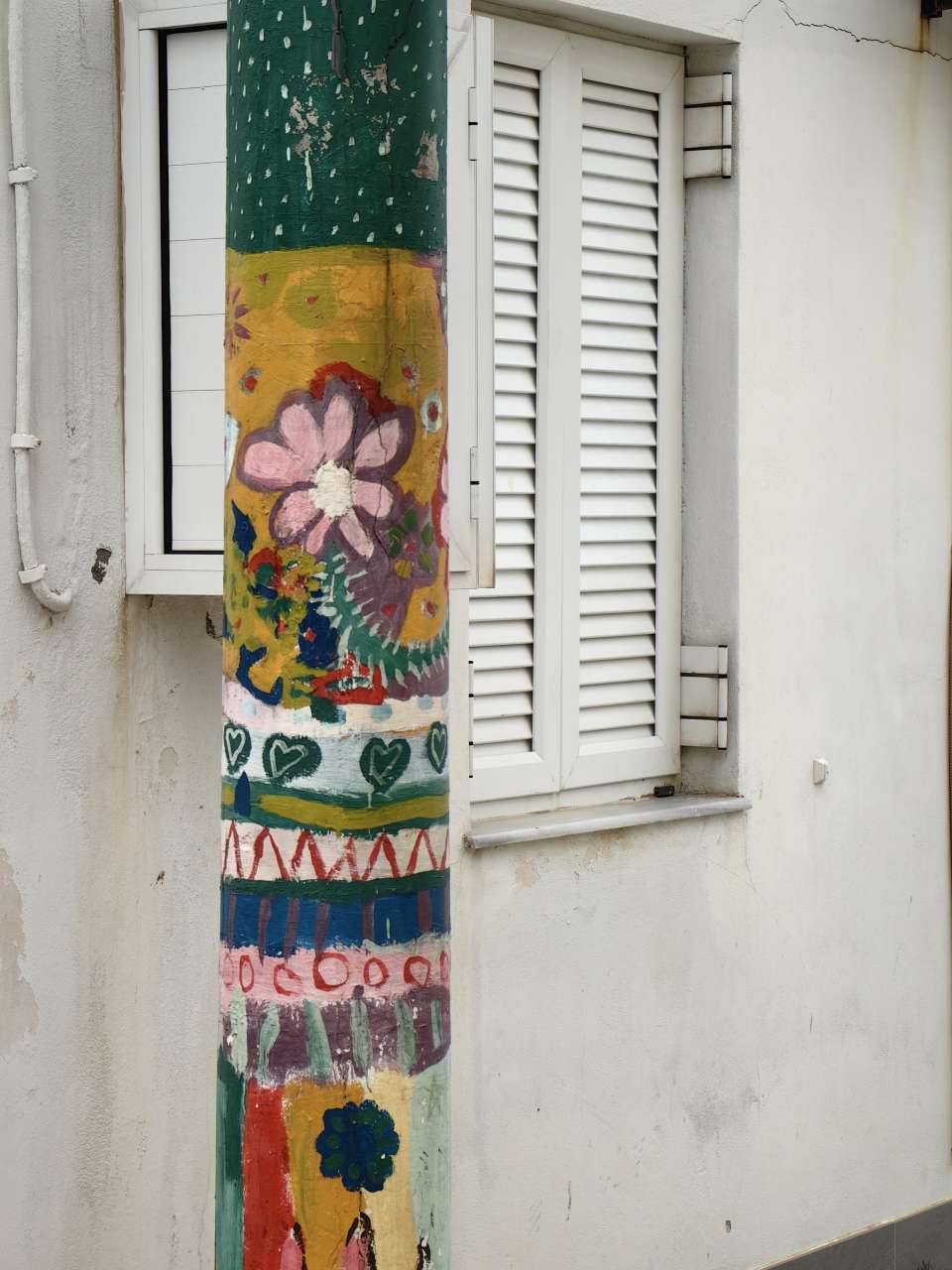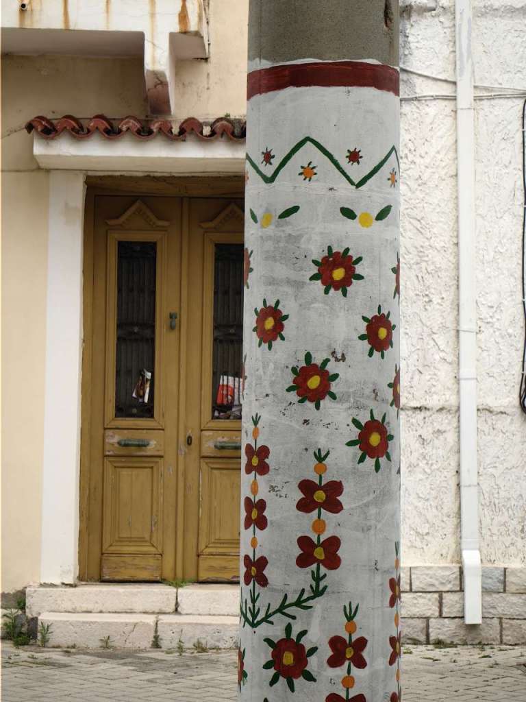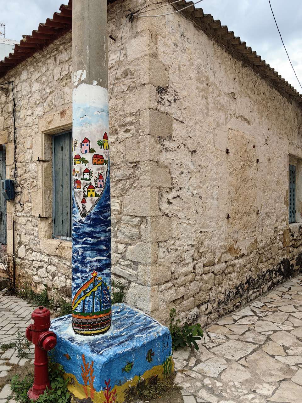 Normal că am luat la pas și străduțele sătucului Mytikas, așa cum le-am găsit, aproape pustii, am ieșit oriunde am reușit la malul mării, prin toate intrândurile, am remarcat că mai toți stâlpii de electricitate sunt frumos pictați, cum n-am mai văzut pe nicăieri până acum…