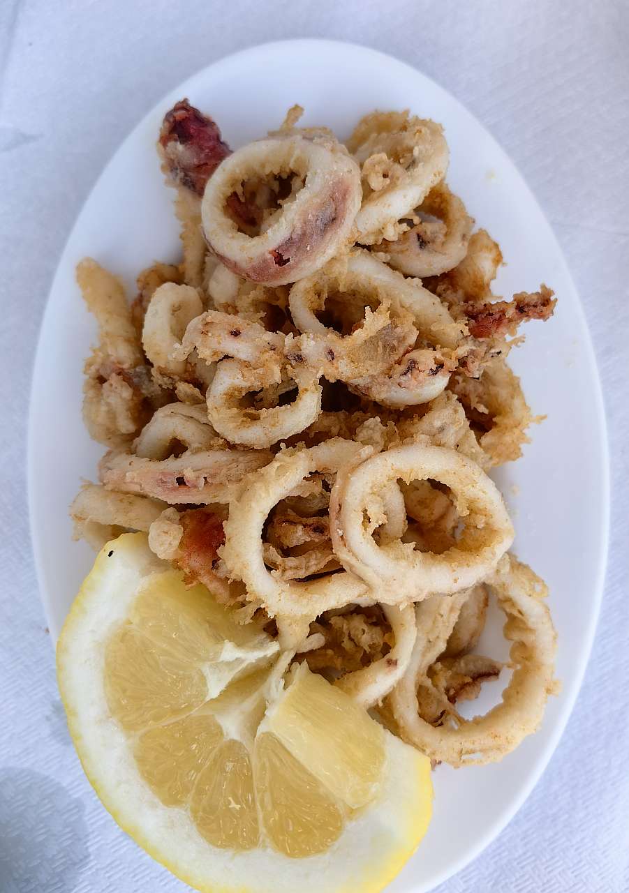 Pentru că ne-a plăcut atât de tare acolo, atât poziția tavernei cât mai ales mâncarea, am revenit la câteva zile, pentru a degusta calamari prăjiți, proaspeți și delicioși, dar și o porție zdravană de pește spadă, tăiat, spălat și pregătit chiar acolo în apele mării.