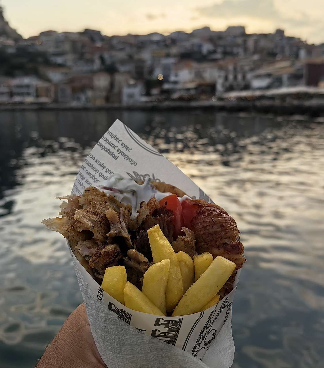 Dar, înainte de a porni turul de forță la venirea inevitabilă a nopții, aveam nevoie de un aport de energie, un gyros veritabil… cald, fierbinte chiar, și bun… cumpărat de la una dintre multele taverne de acolo.