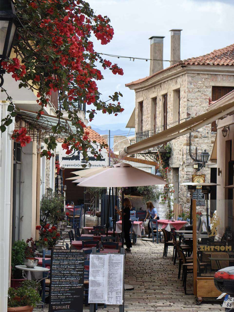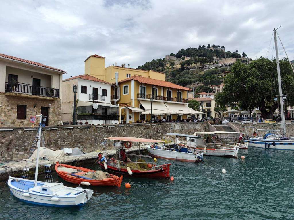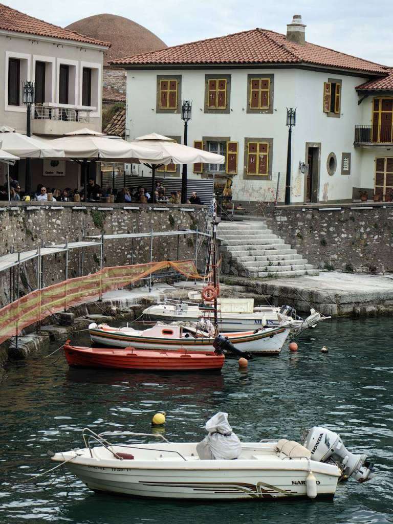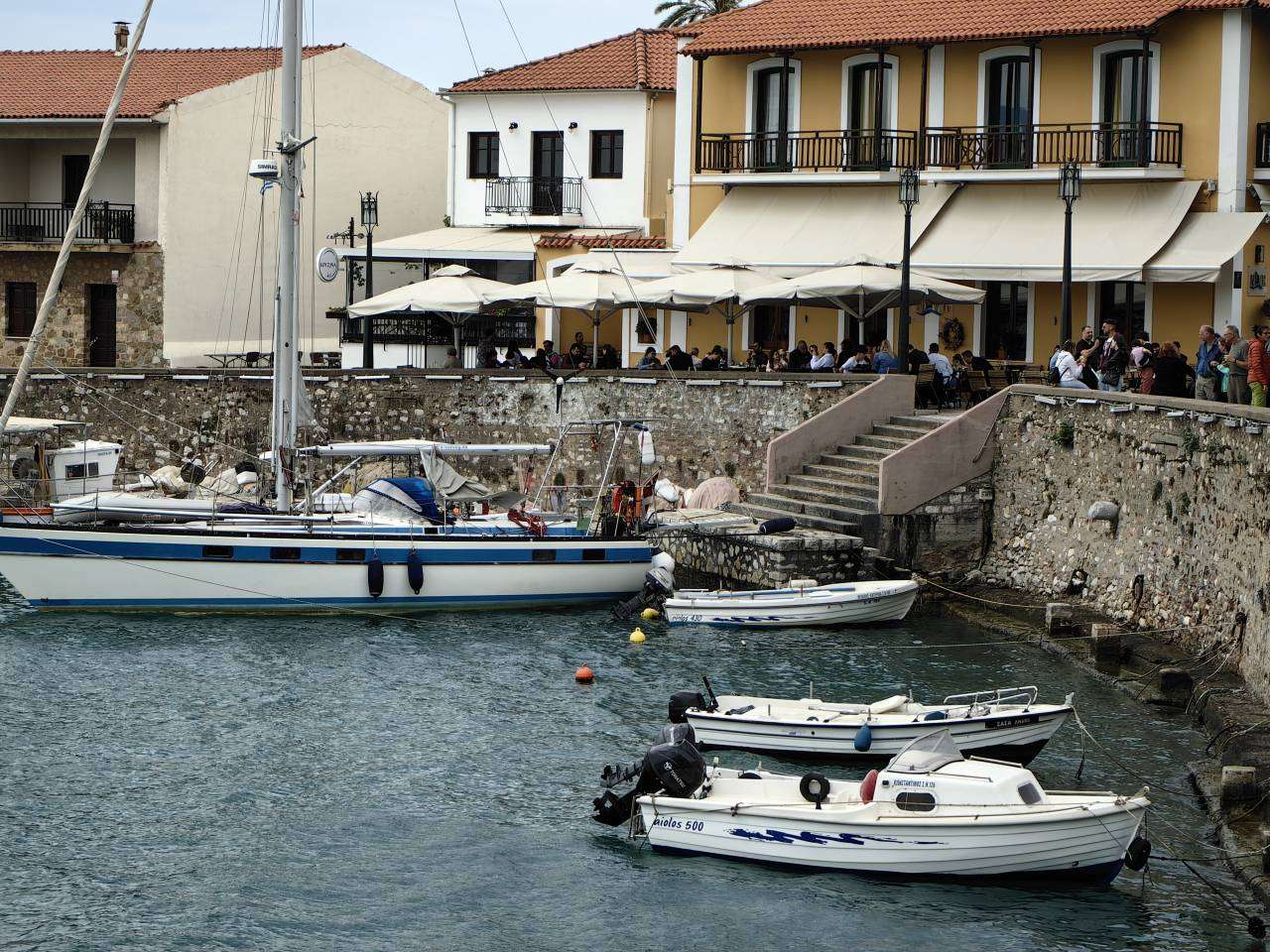 Zona micuțului port medieval era cea mai animată, cu o mulțime de taverne, terase și cafenele, aproape pline ochi de turiști sau de localnici care ieșiseră de la vot (pesemne). Nu de alta, dar în acea zi de duminică am văzut o mulțime de școli în care oamenii mergeau la vot în Grecia.
