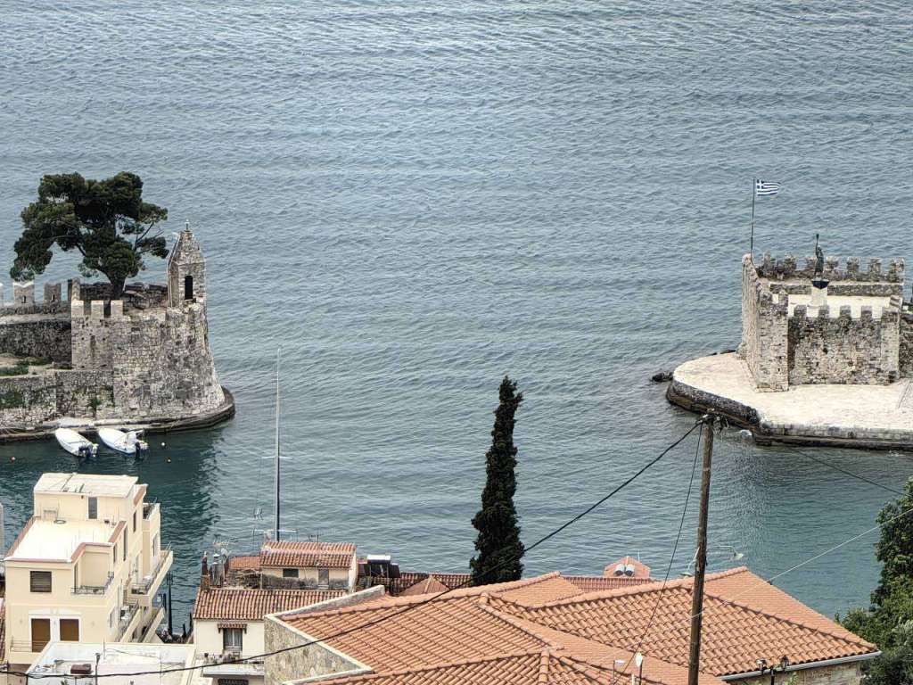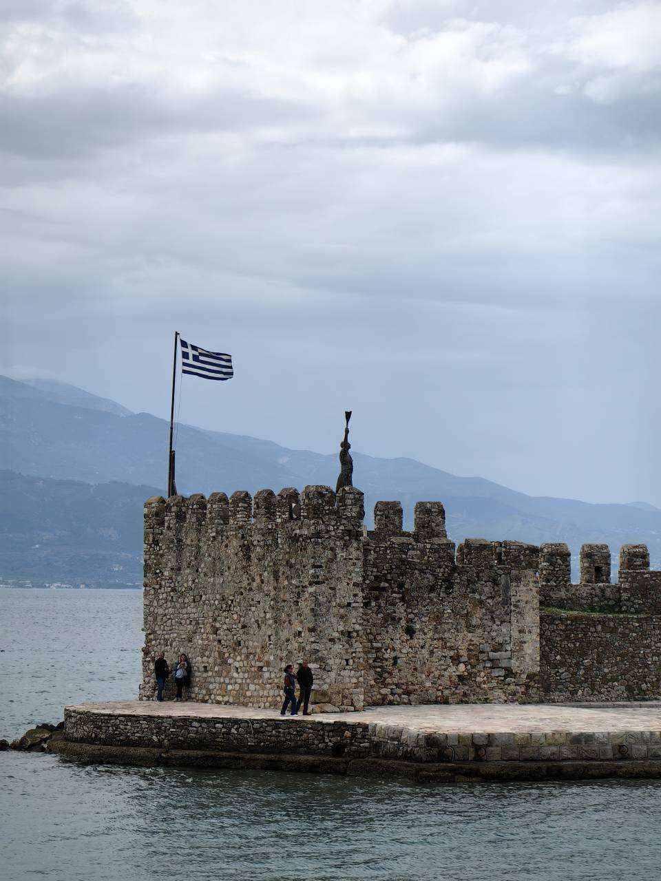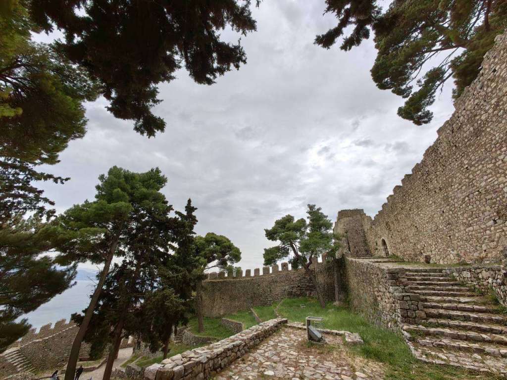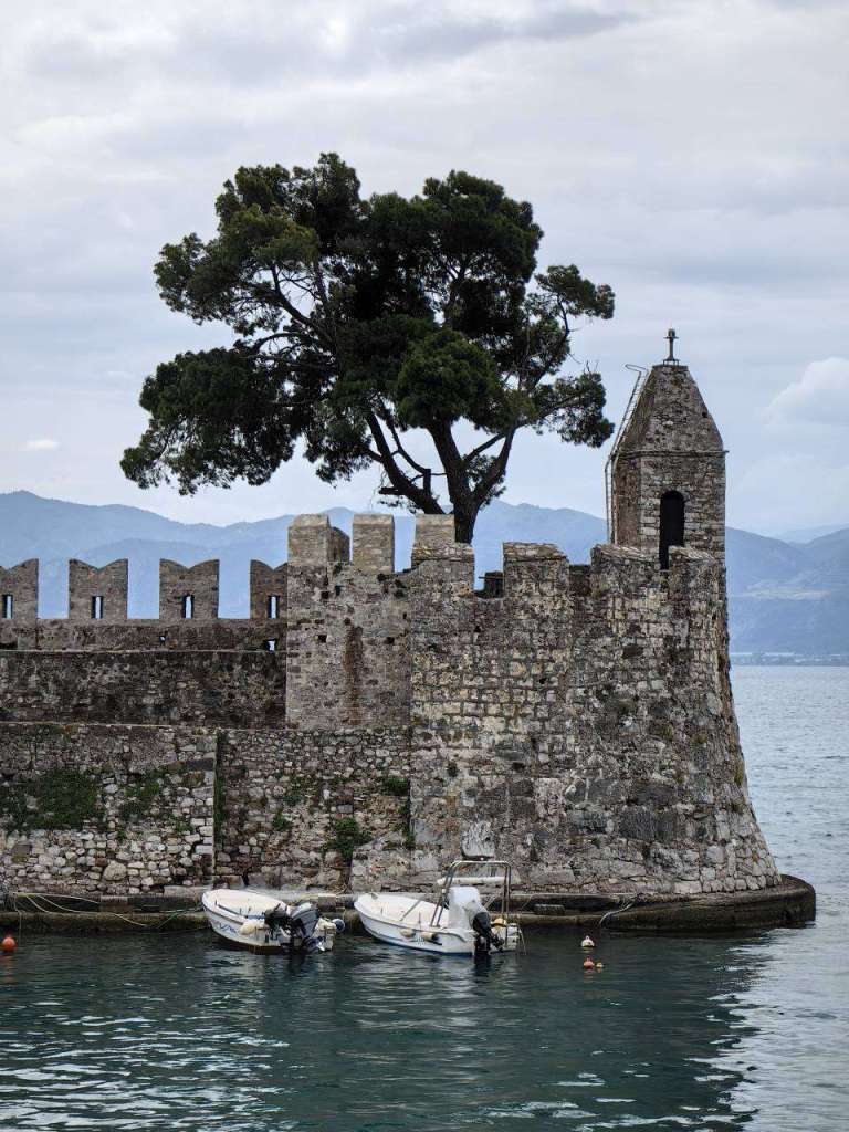 Față de Parga, cetatea venețiană din Nafpaktos este amenajată și poate fi vizitată contra-cost, 3 Euro de persoană. Cum pe al nostru Rocky nu-l primeau, am intrat singur mai mult de curiozitate să admir panoramele asupra orașului. Că la interior nu prea poți vizita altceva după cum am constatat ulterior, doar niște cărări pietruite care duc către anumite zone ale cetății, niciun muzeu, nici măcar nu prea ai voie să te apropii de ziduri. Atunci de ce nu ne-au lăsat cu cățelul? Că noi suntem din ăia care strâng și fac curat dacă-l apucă nevoile… Mă rog…