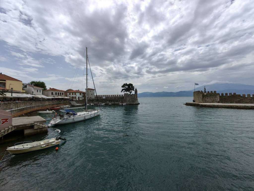 În Nafpaktos ajunși, am găsit o parcare cât mai aproape de portul medieval, de altfel punctul de atracție al frumosului orășel. Am parcat, am mers să vedem plaja, una chiar generoasă, cu podul Rio vizibil în depărtare, chiar frumos acolo. Apoi am luat-o agale către port, cu ochii benoclați la tot ceea ce-mi ieșea în cale. Și, sincer să fiu, mi-a plăcut ce am văzut.