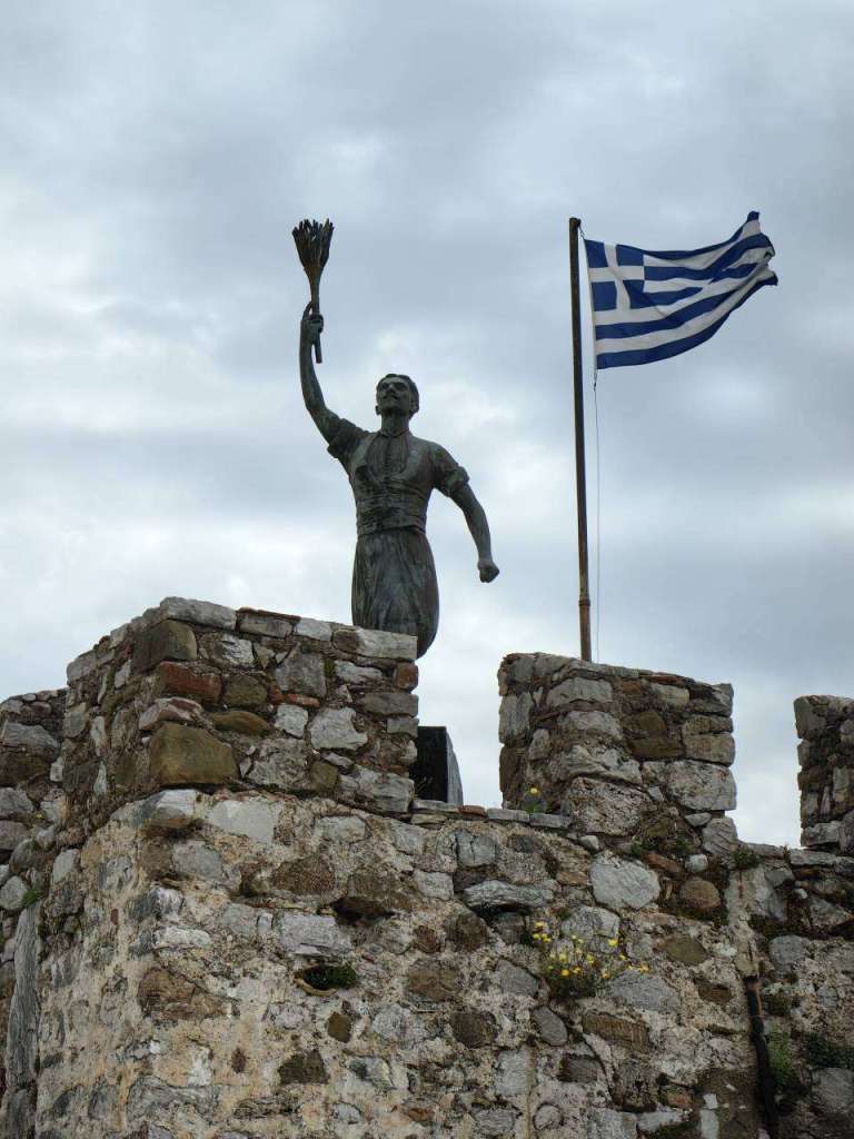 Vis-a-vis de statuia lui Cervantes poate fi văzută cea a lui Giorgos Anemogiannis, care a luptat la eliberarea orașului de sub jugul otoman (expresie care mi-a marcat copilăria, asta cu jugul).