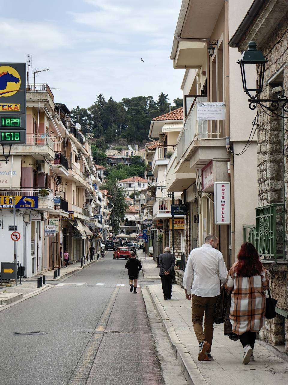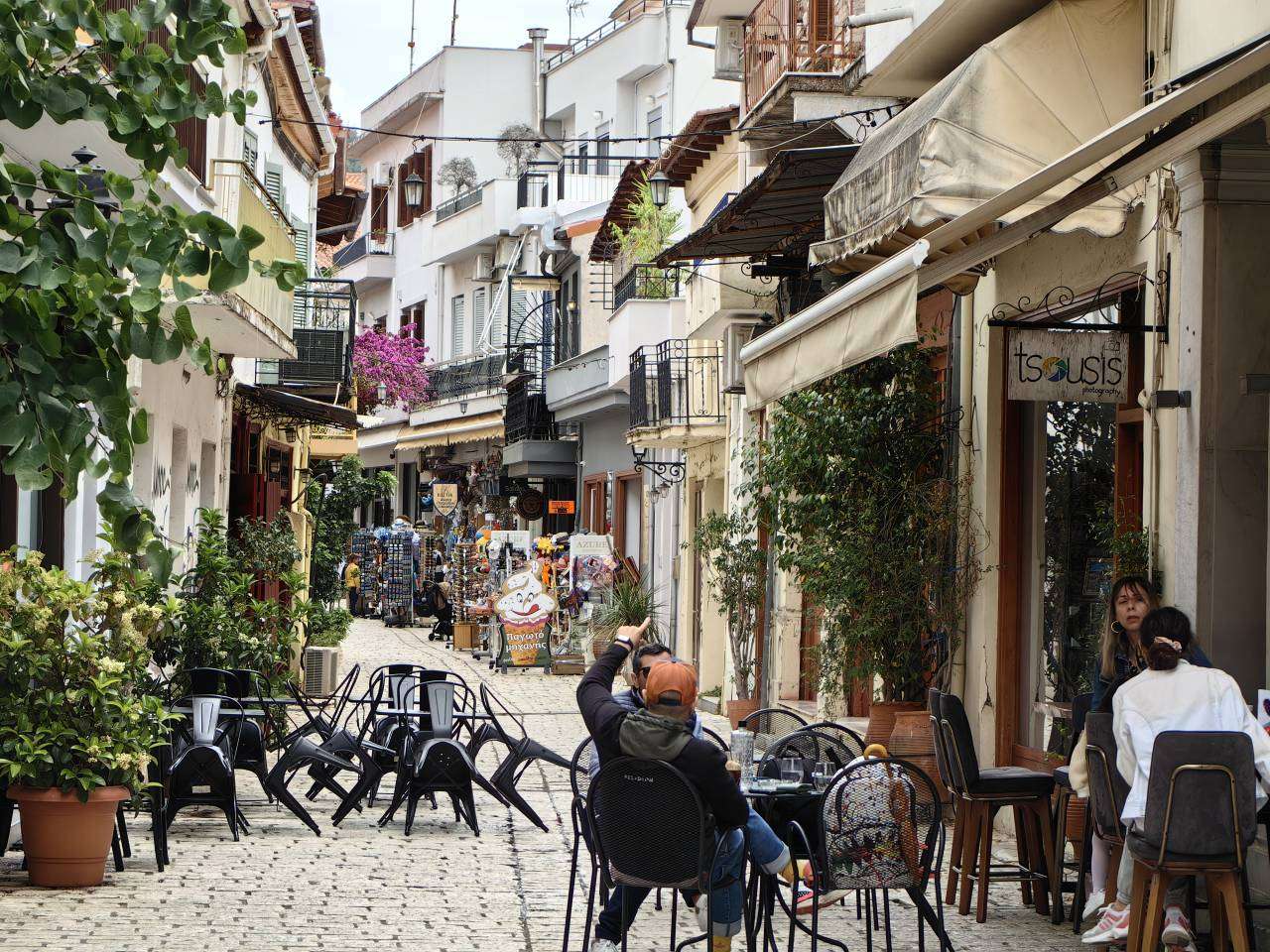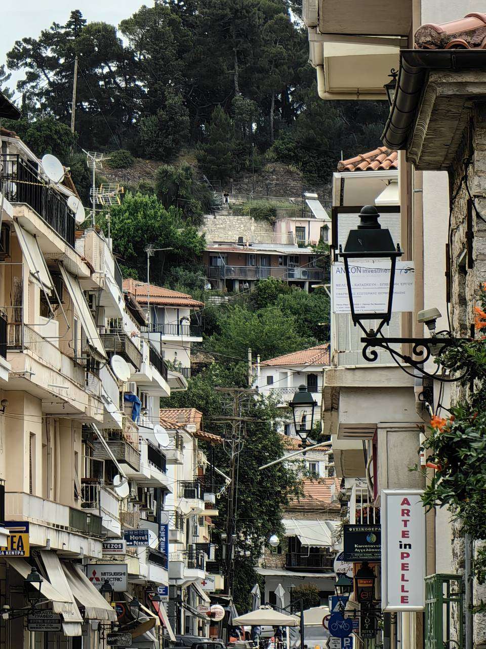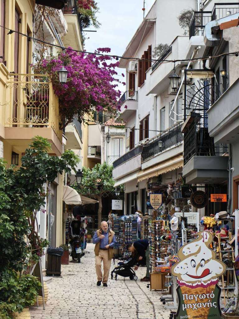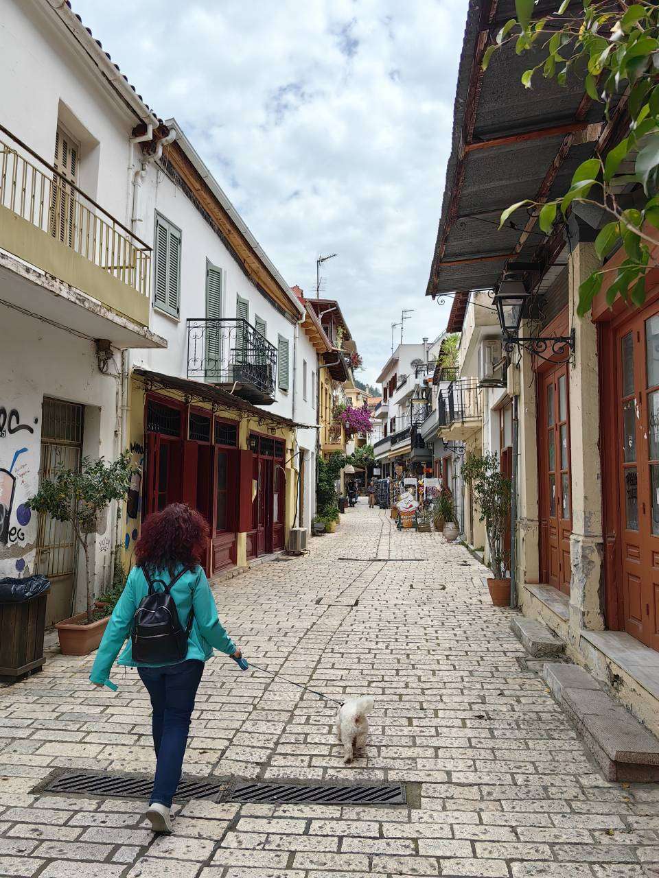 După vreo câteva mii de pași sănătoși, ne-am așezat pe o băncuță pentru a ne potoli foamea cu o plăcintă grecească, bună, sărumâna pentru masă. Apoi am luat-o iar la pe străduțe, nu cât de mult aș fi dorit eu, pentru că nu aș mai fi plecat de acolo, aș fi colindat în neștire ore în șir, prin toate cotloanele sale de orășel istoric. Dar nah, programul e program, seniorii prezenți alături de noi în vacanță au alt ritm și putere de mers pe jos, ne conformăm, deși mai greu, dorințelor grupului.