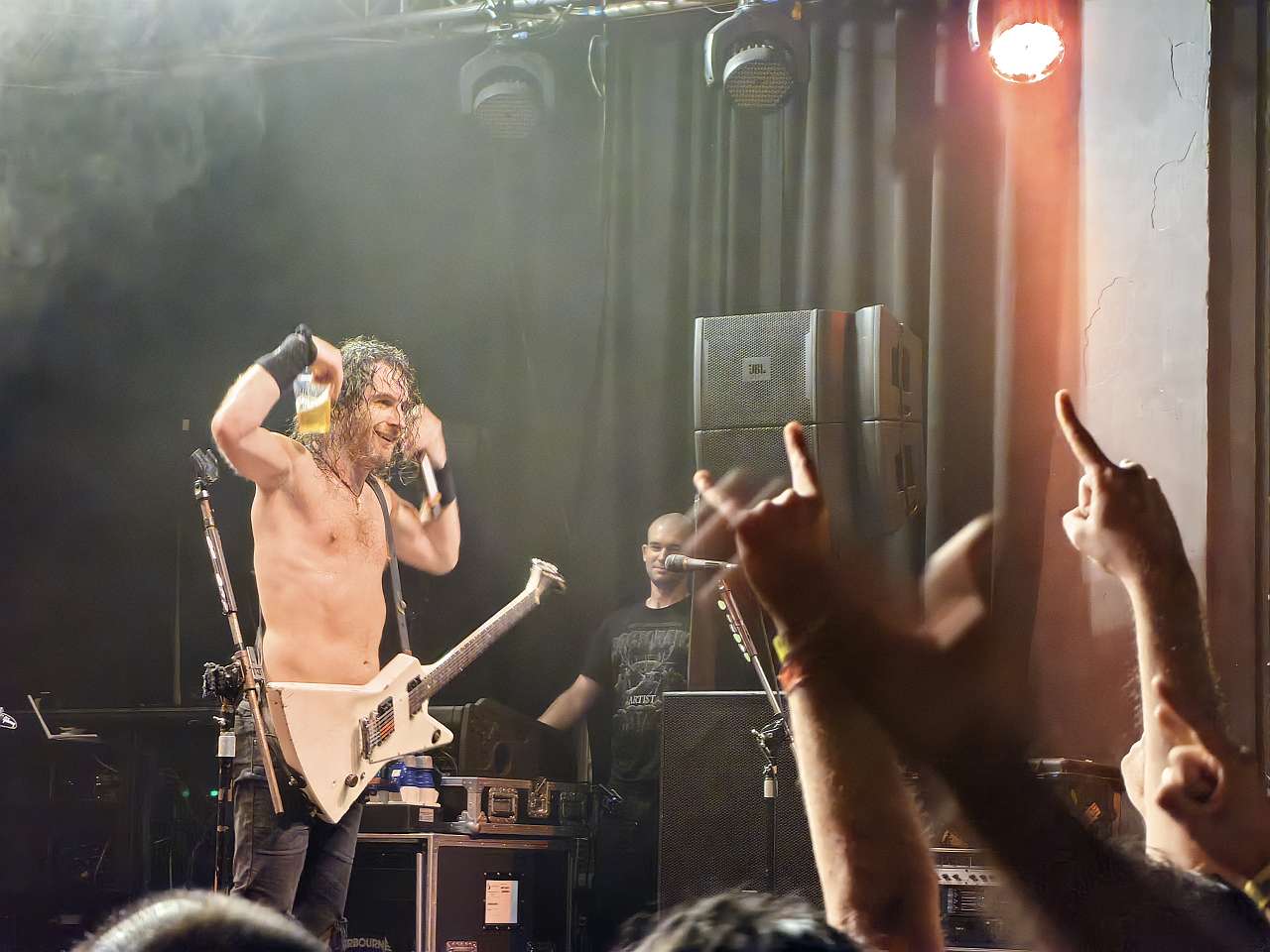 Publicul încântat, din față și până în fundul sălii, ba chiar cei de lângă scenă au fost împroșcați constat cu paharele de bere ale solistului. Care, a făcut și un tur prin mijlocul publicului în timp ce cânta la chitară, pe umerii unui membru al staff-ului. Ce să mai, m-am simțit bine, m-am bucurat din plin de gustul rock-ului veritabil, bine făcut, cântat cu pasiune și, de ce nu, cu suflet.