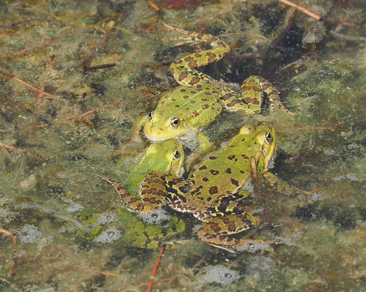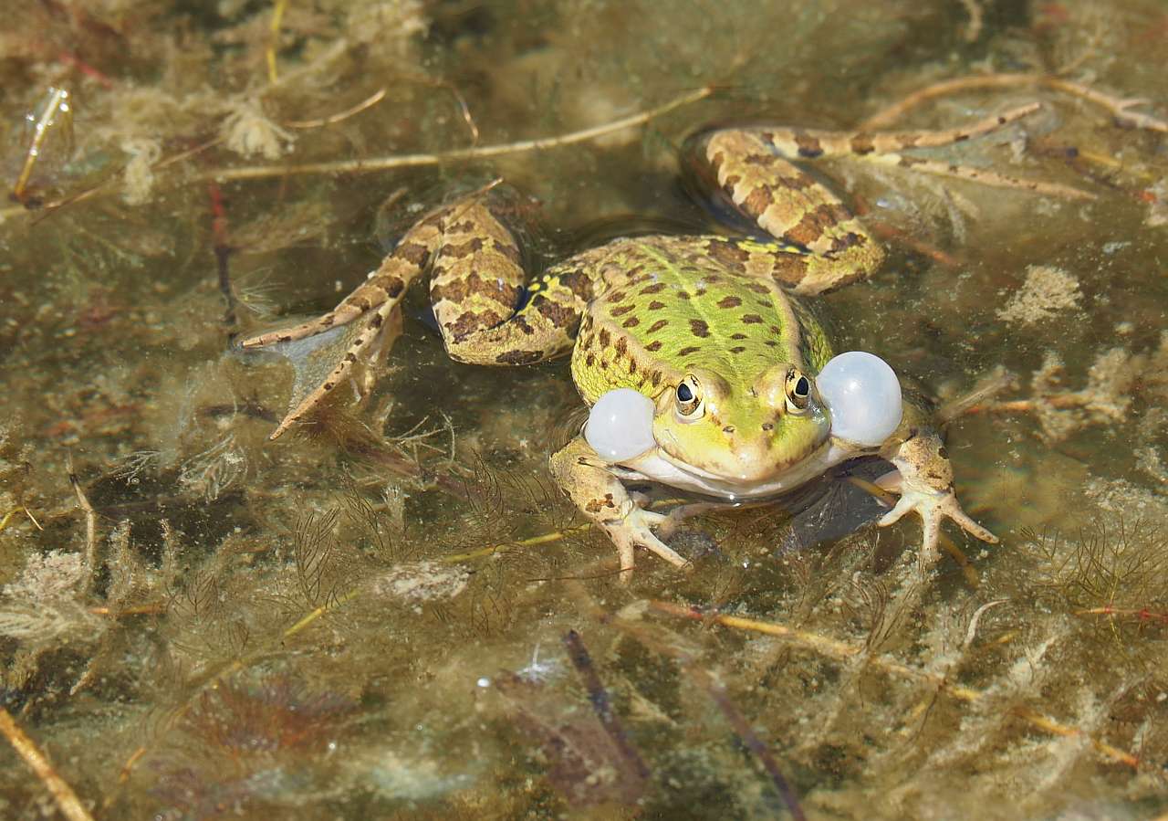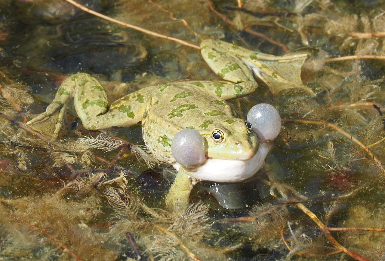 Cântau de mai mare focul râioasele, umflându-și din răsputeri sacii elastici cât capul lor de mare, cam cum umflăm noi guma de mestecat. Nu am văzut niciodată atât de multe într-un loc atât de mic, de toate nuanțele de verde existente pe lumea asta, pătate, mici sau babane, ascunzându-se imediat când mă apropiam de suprafața apei, pentru ca imediat să apară și să mă privească, curioase.