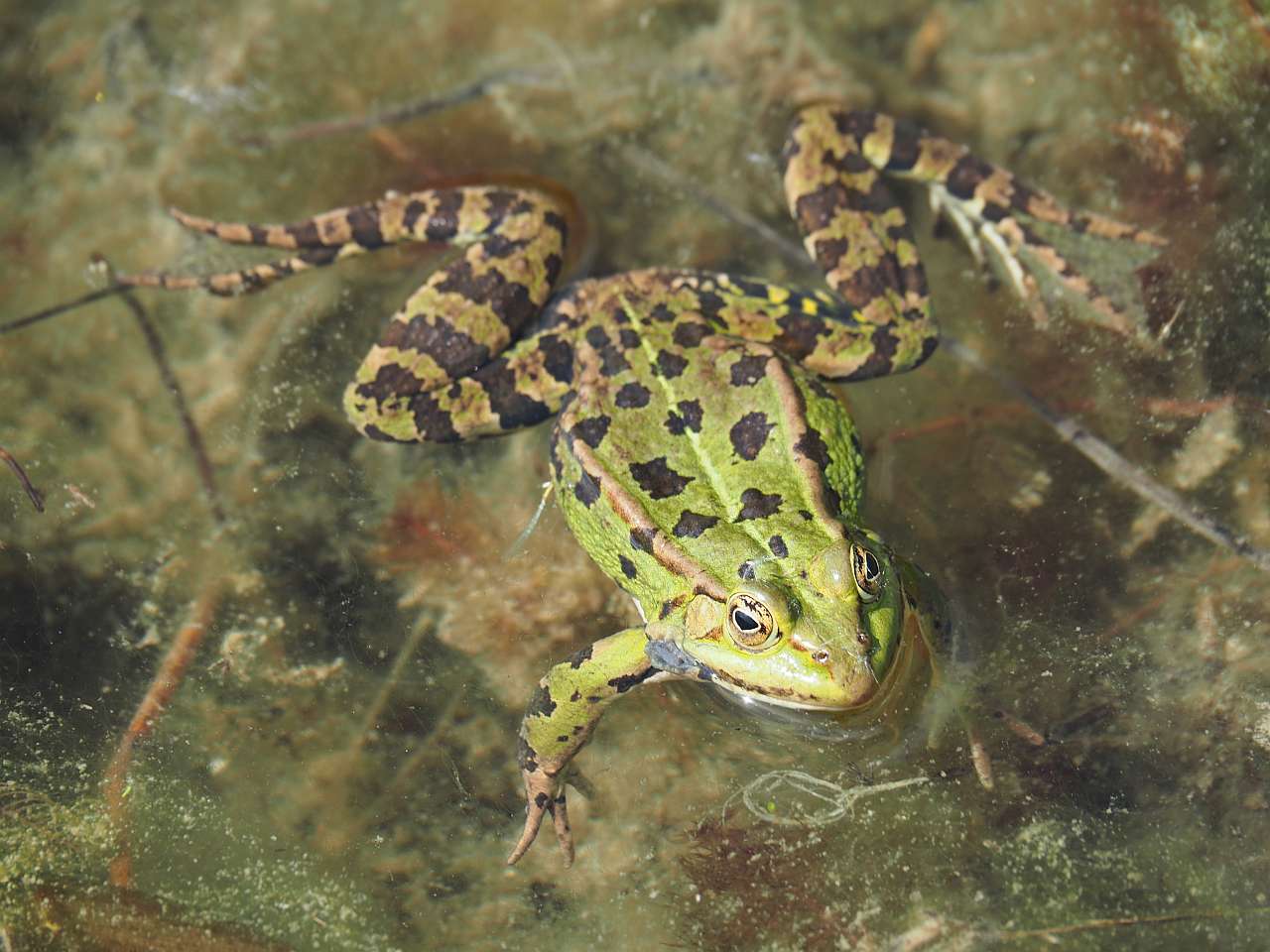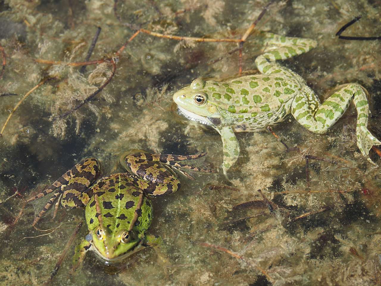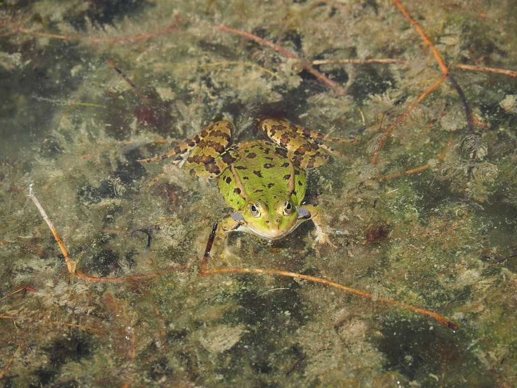 Cântau de mai mare focul râioasele, umflându-și din răsputeri sacii elastici cât capul lor de mare, cam cum umflăm noi guma de mestecat. Nu am văzut niciodată atât de multe într-un loc atât de mic, de toate nuanțele de verde existente pe lumea asta, pătate, mici sau babane, ascunzându-se imediat când mă apropiam de suprafața apei, pentru ca imediat să apară și să mă privească, curioase.