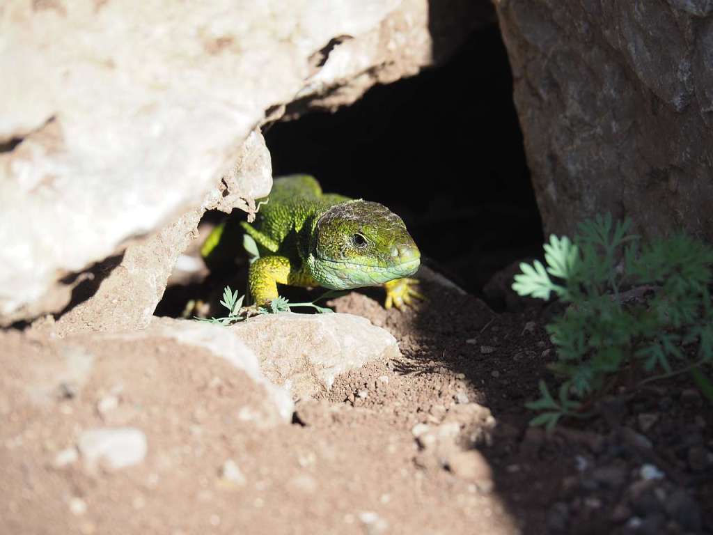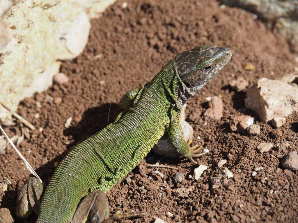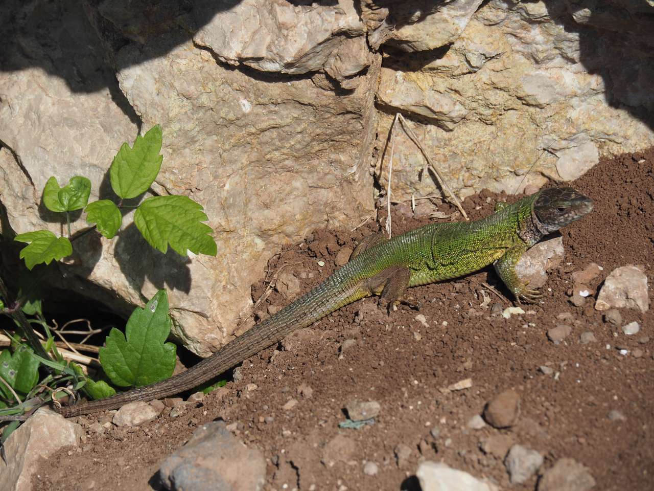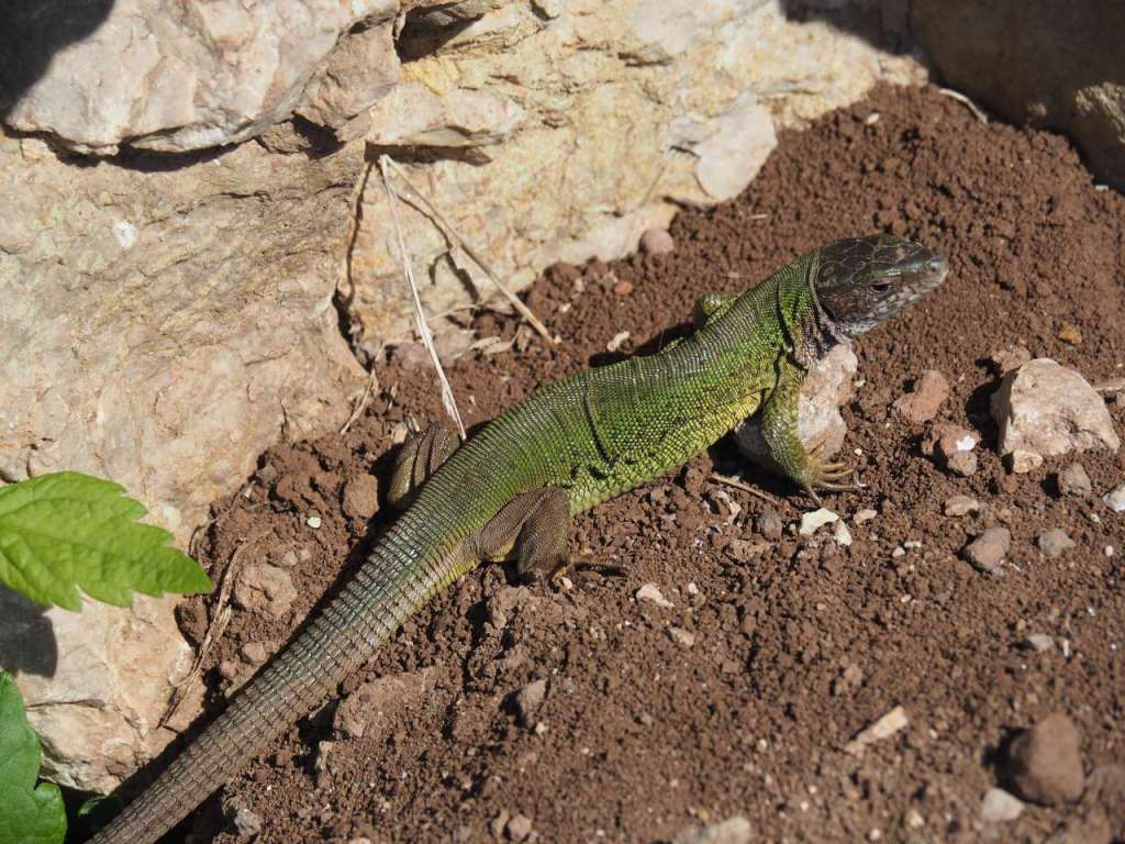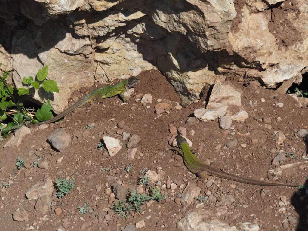 Asta nu înainte ca un foșnet de vegetație foarte aproape de picioarele mele să-mi atragă atenția. Mi-am dat seama că este vreo șopârșă ghidușă, mai degrabă speriată, așa că i-am luat urma până la ditamai bolovanul unde am avut surpriza să dau de alte surate ale acesteia, ce se încălzeau în razele de soare ale dimineții.