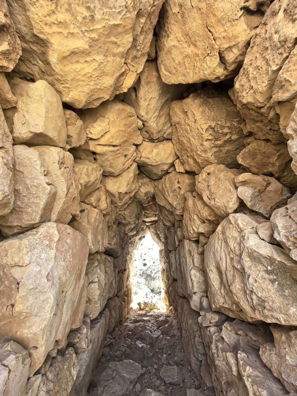 … pentru ca imediat să ajungem la o poartă într-un zid de apărare construit din bolovani de stâncă, de chiar că zici că au fost puși cap la cap de uriașii ciclopi, nu de pământeni. Căci ce altă explicație să ai când vezi o așa construcție megalitică? Doar una cu iz de fantastic…