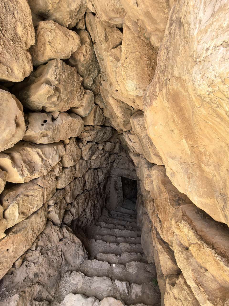 Vis-a-vis de impresionantul zid, am pătruns sub pământ, în cisternele antice, unde erau ținute rezervele de apă ale cetății, la fel, am impresia că tot ciclopii s-au ocupat de construcția acestora…