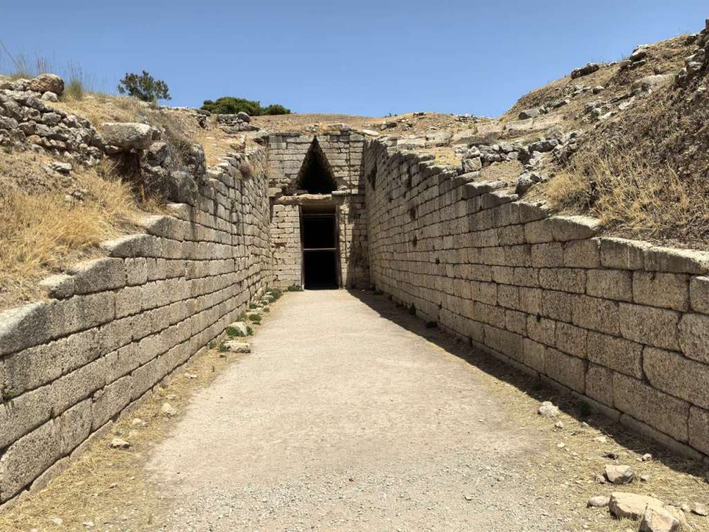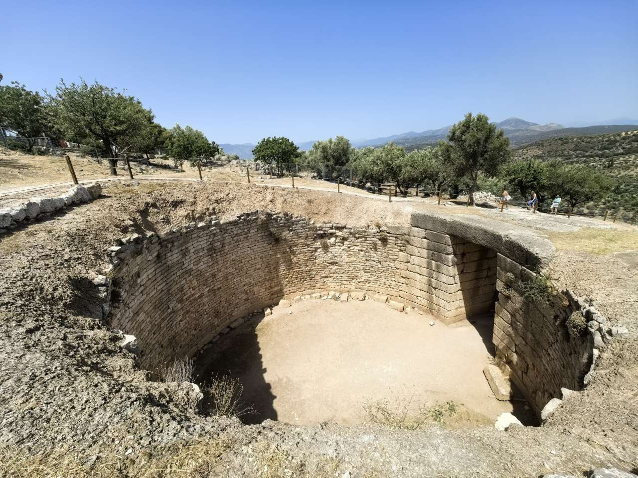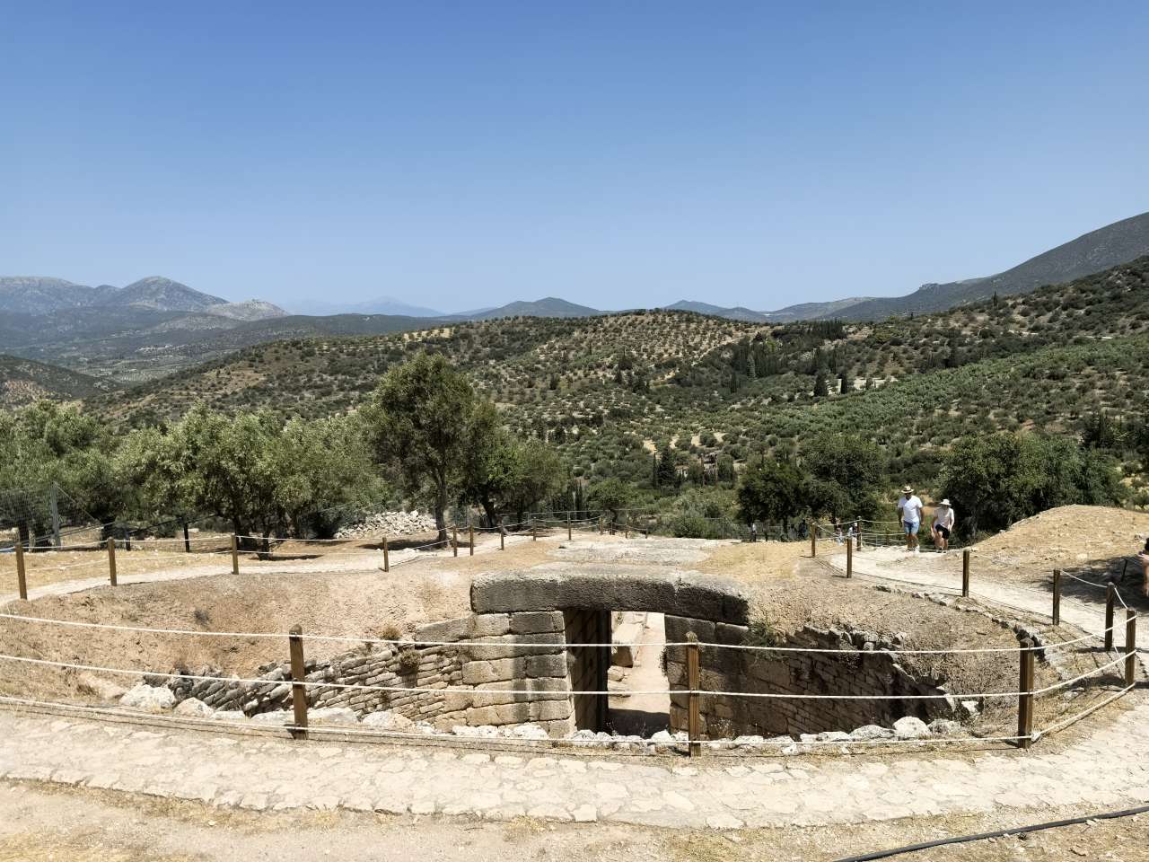 Mormântul lui Agamemnon, impresionant, numit și Trezoreria lui Atreus, poate fi vizitat în altă parte, puțin mai jos pe șosea, într-un areal separat dar accesibil prin intermediul aceluiași bilet.
