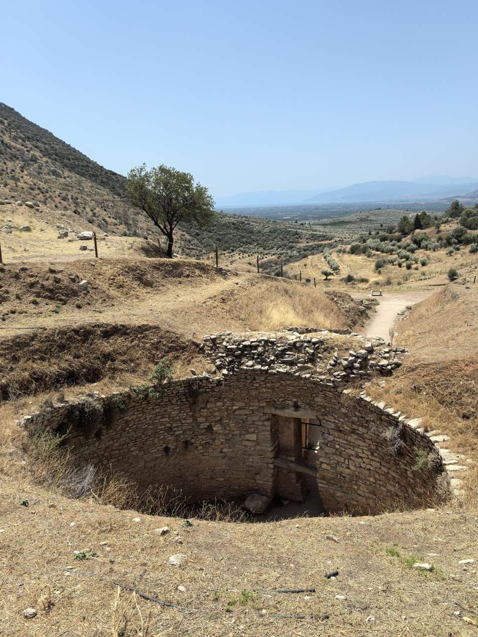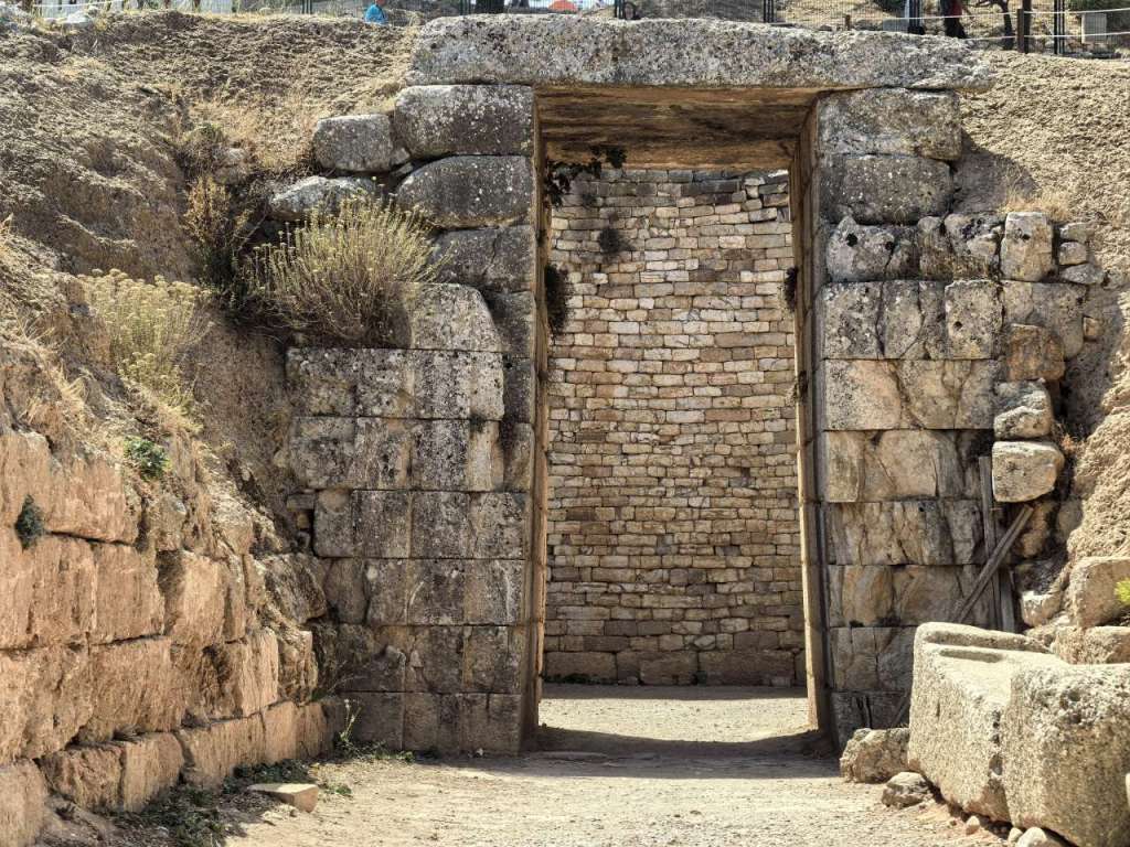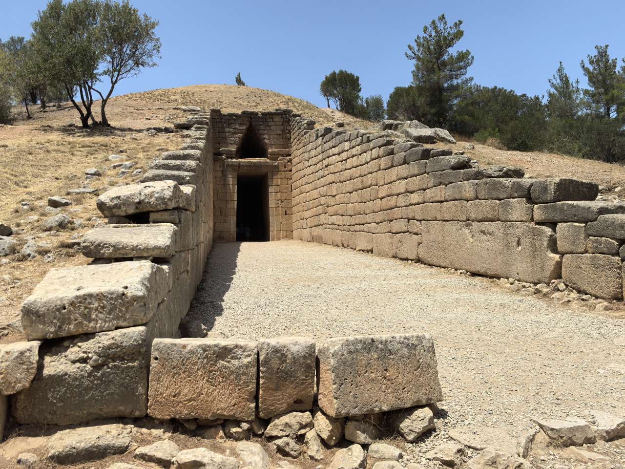 Mormântul lui Agamemnon, impresionant, numit și Trezoreria lui Atreus, poate fi vizitat în altă parte, puțin mai jos pe șosea, într-un areal separat dar accesibil prin intermediul aceluiași bilet.