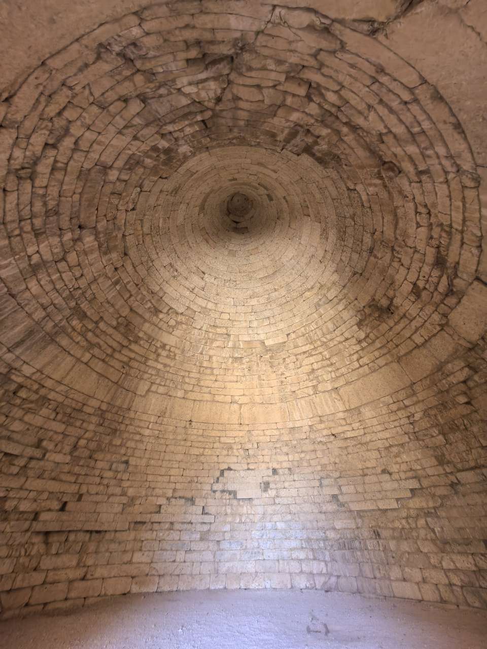 Continuăm în sus pe aleea modernă, care șerpuiește printre ruinele antice, și trecem pe lângă Agora, grânarul de odinioară și o altă zonă funerară, în care ar fi fost înmormântate personalități regale ale Cetății, tot prin secolul 16îHr.
