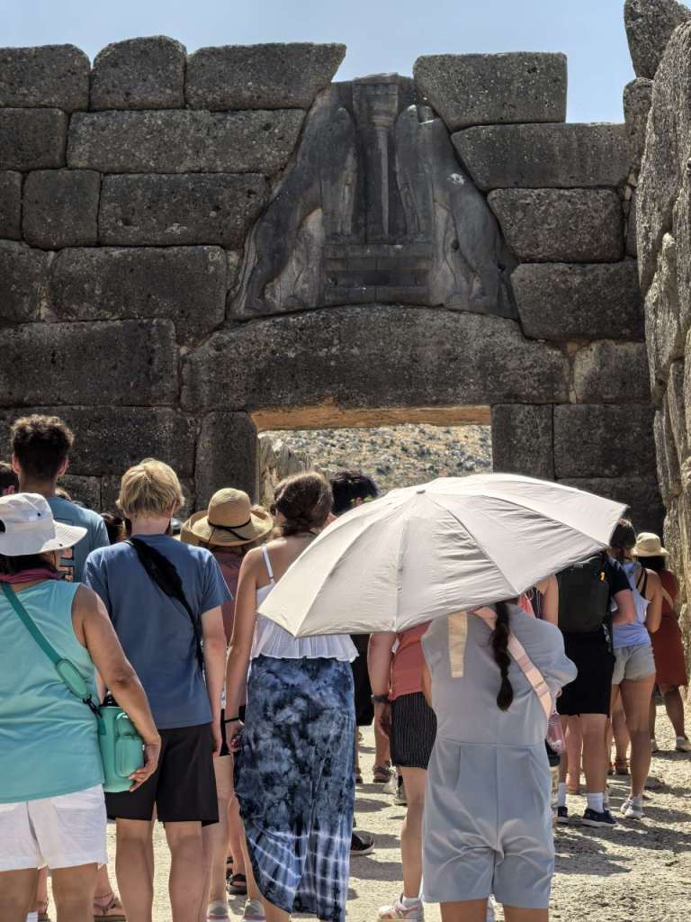 Iar pe drum ne-am oprit pentru câteva ore în Orașul Ciclopilor, anticul Micene. Un loc pe care doream să-l văd cu prima ocazie când aveam să trecem în Peloponez. Și, iată că astrele s-au aliniat, zeii ne-au surâs mai degrabă, ca să păstrăm contextul, așa că nu am ratat-o, deși vizitarea unui sit arheologic sub dogoritorul soare grecesc poate fi o adevărată provocare, atât pentru tineri cât și pentru cei trecuți demult de aceasta.