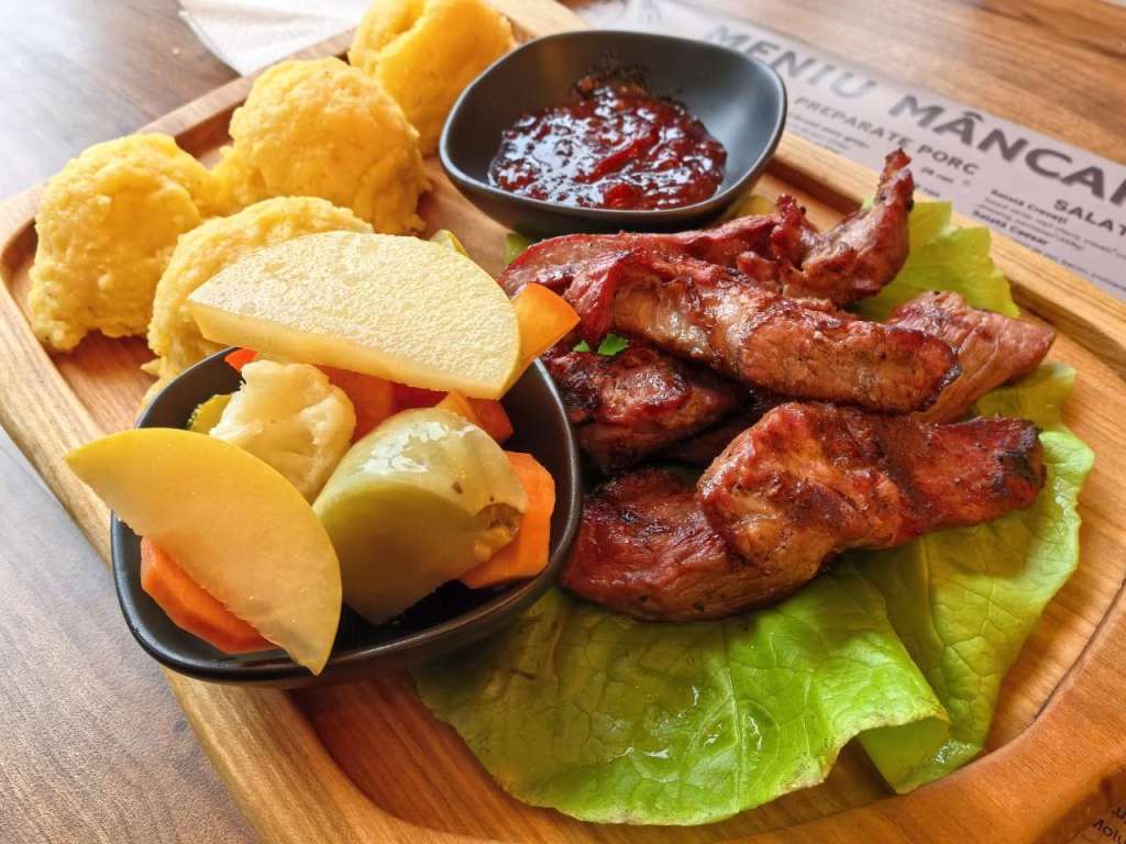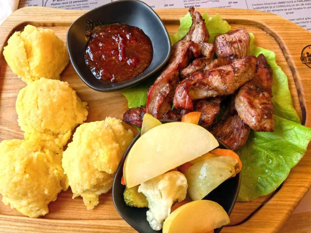 Nu am stat prea mult pe gânduri și am comandat o ciorbă de burtă, o pastramă de Pleșcoi cu mămăliguță dar și niște cârnați, tot de Pleșcoi, că doar de aia am mers acolo în Sătuc, Berca, nu să mâncăm pizza.