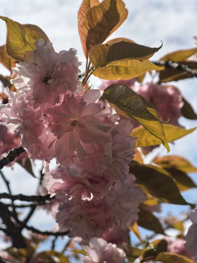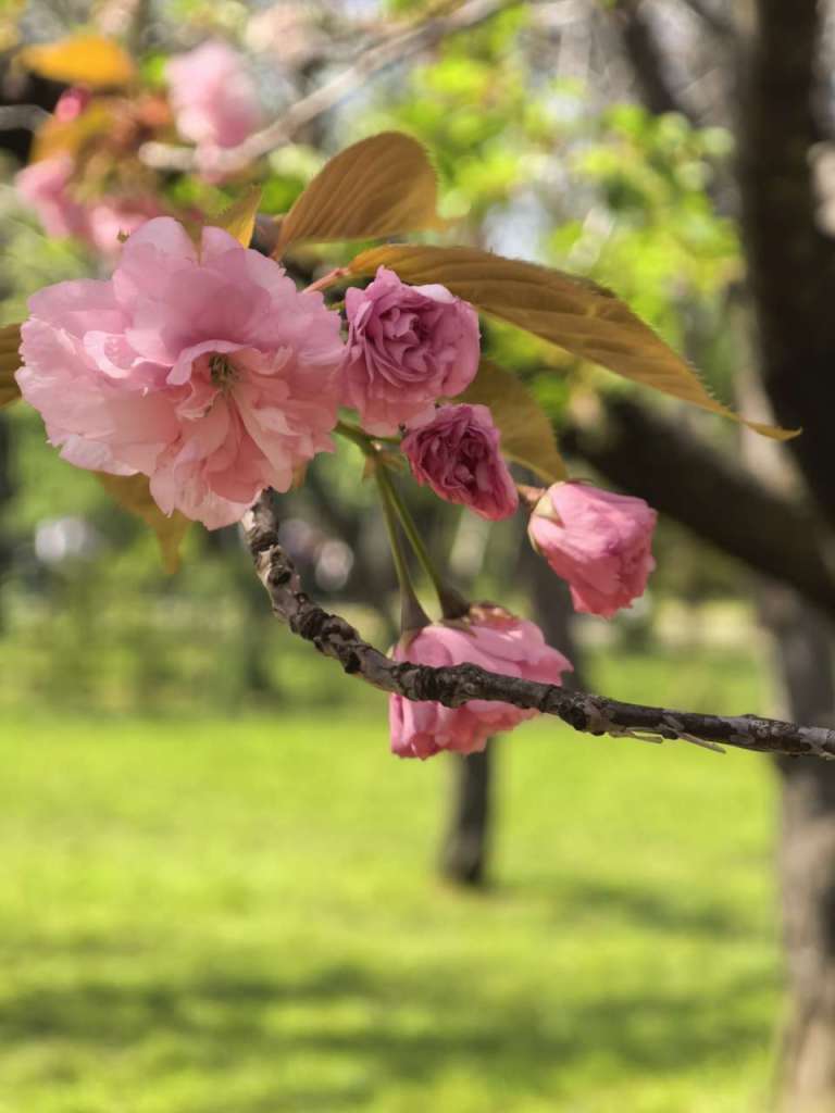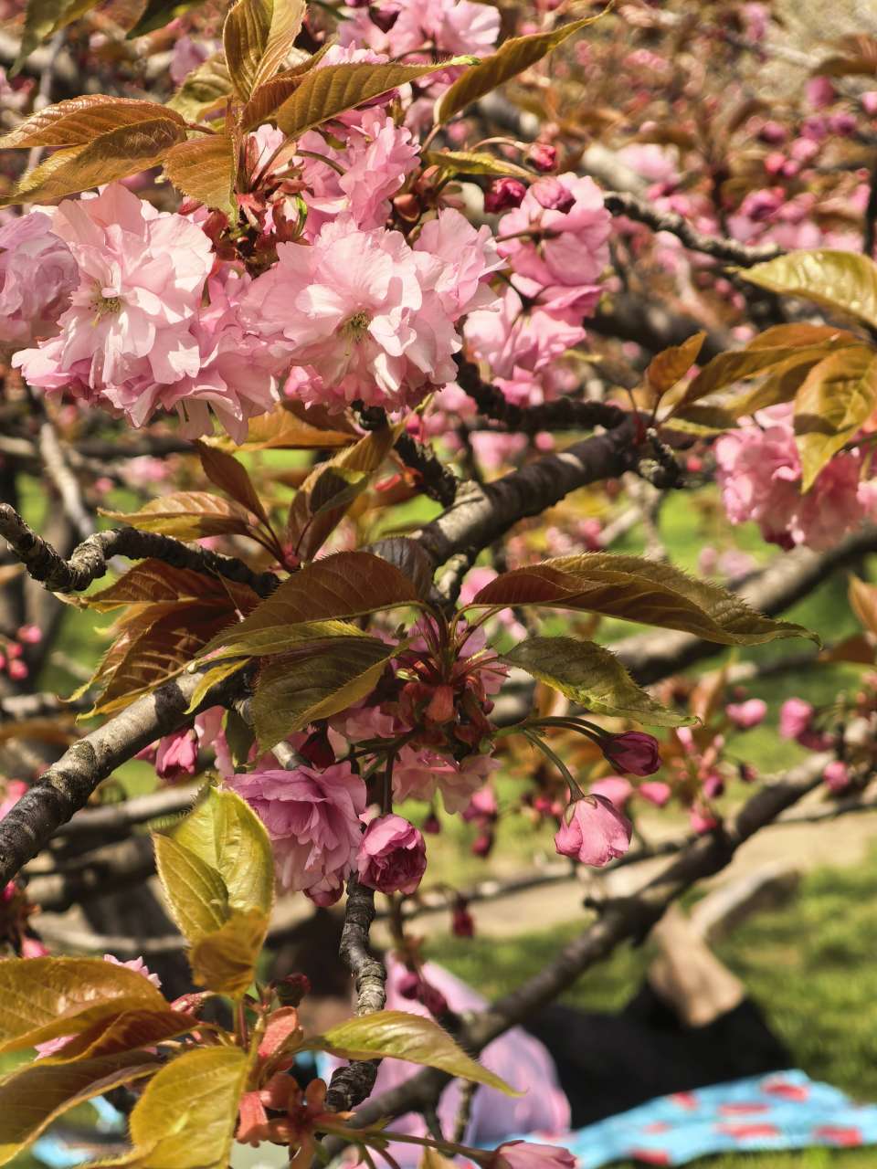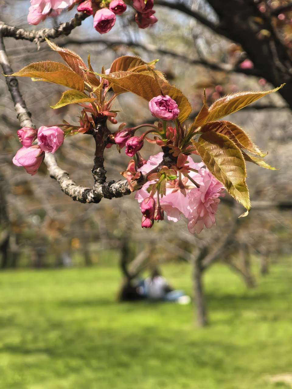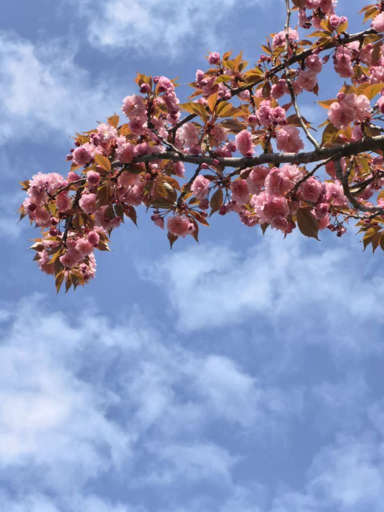 Cireși înfloriți, nu toți încă, destui însă pentru a te bucura ca japonezii de măiastrul spectacol al naturii, chiar și într-o micuță grădină înconjurată de asfalt și de trafic ca la balamuc. Chiar am zărit și câțiva japonezi care se bucurau ca acasă la ei de o așa minune.