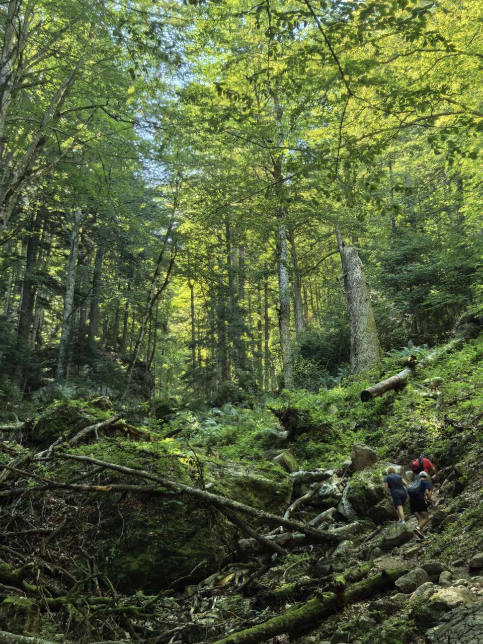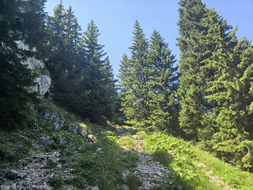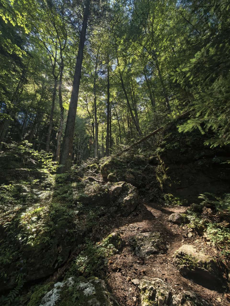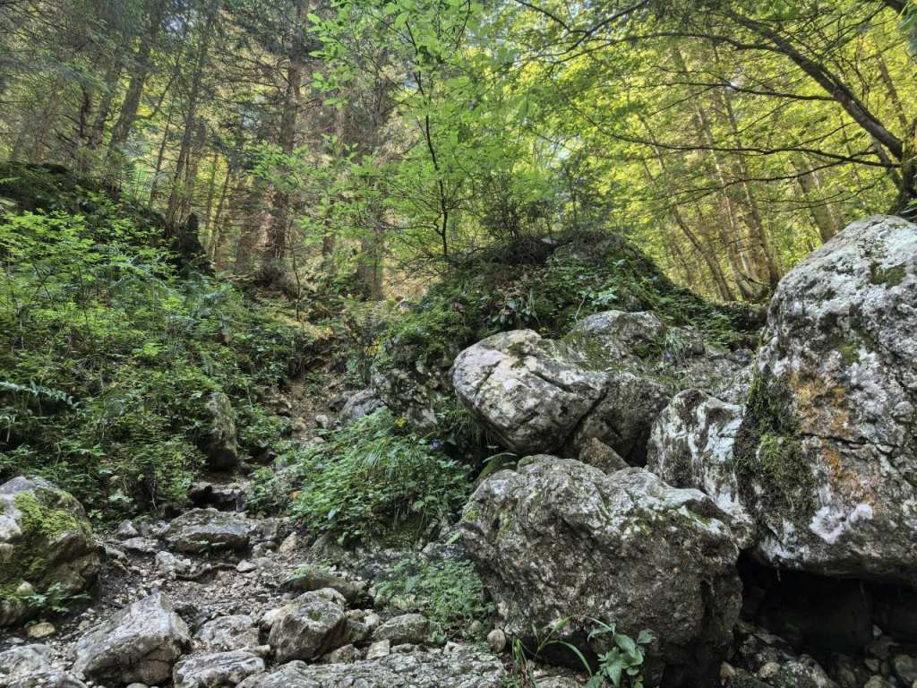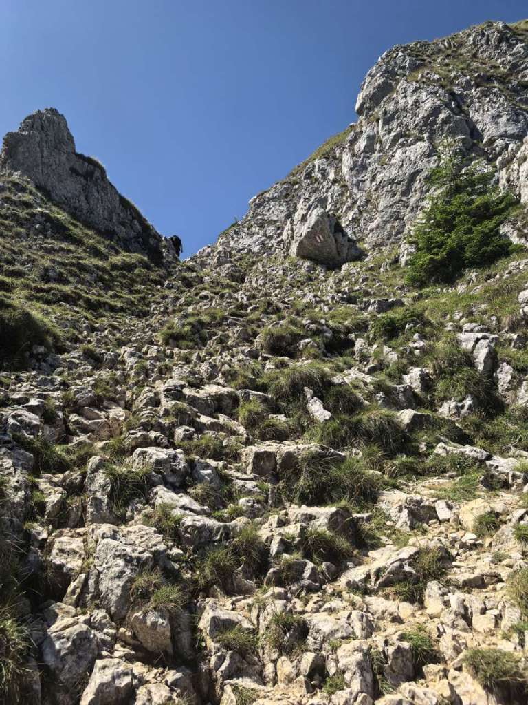 De aici cărarea se ascute, devine tot mai abruptă, apar bolovanii, stâncile și rădăcinile copacilor, plus treceri din piatră, mai simplu sau un pic mai dificil de escaladat. Dar nimic foarte complicat sau periculos.