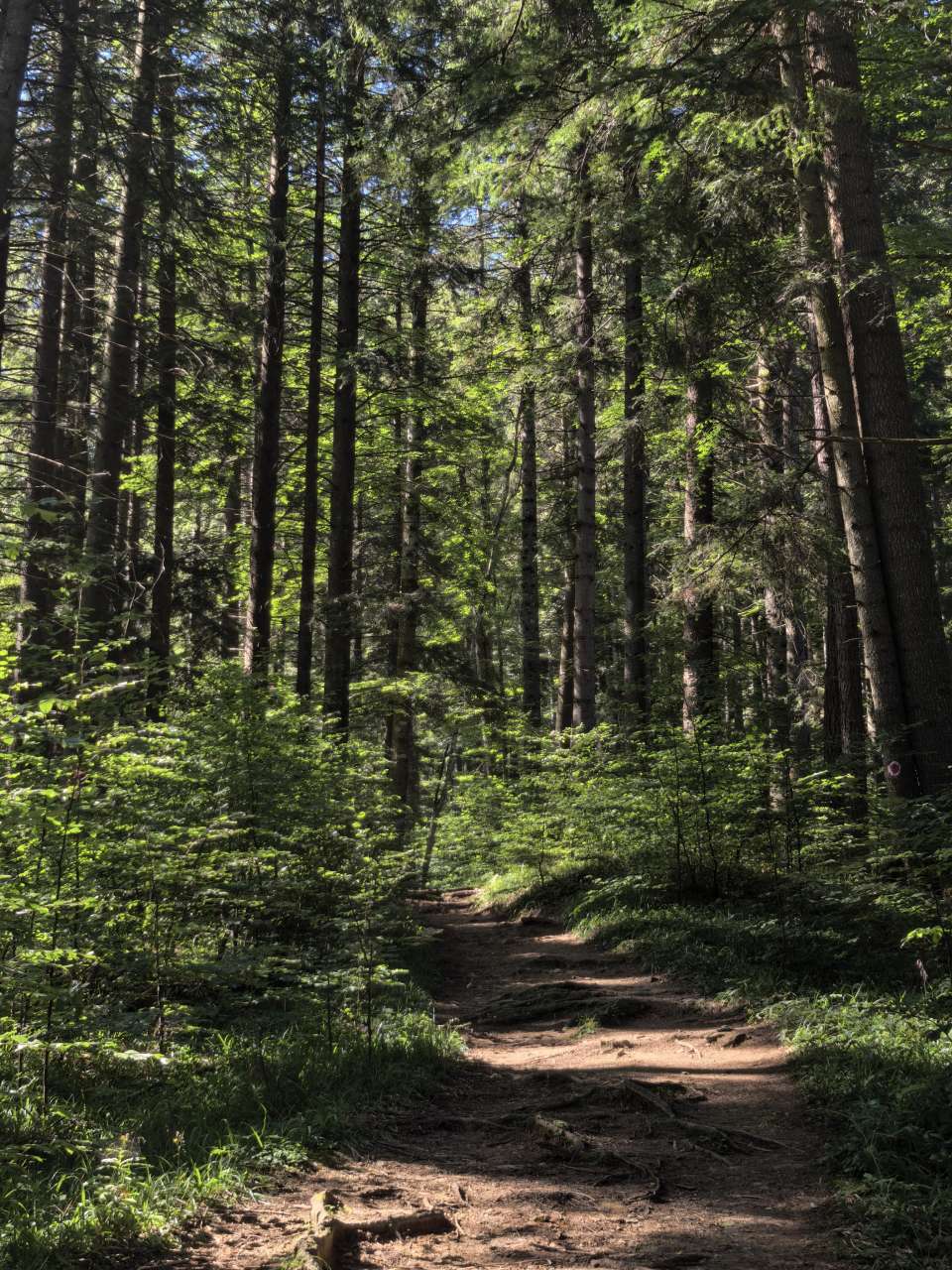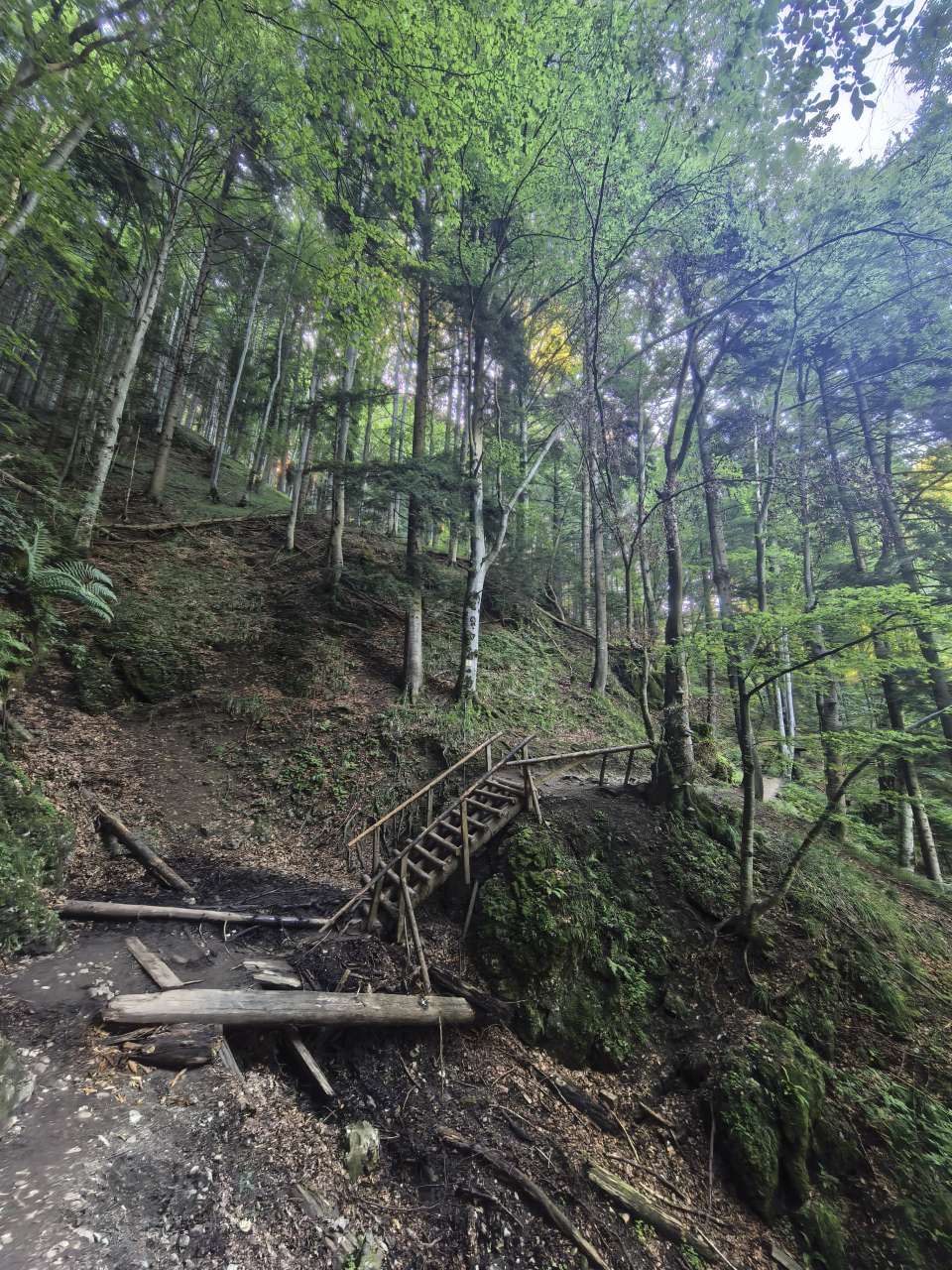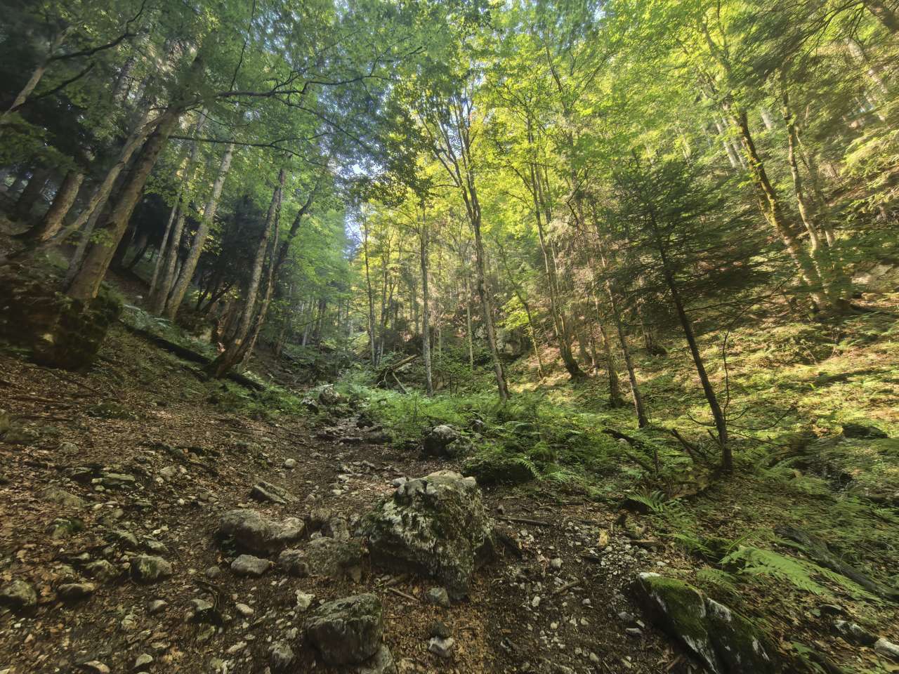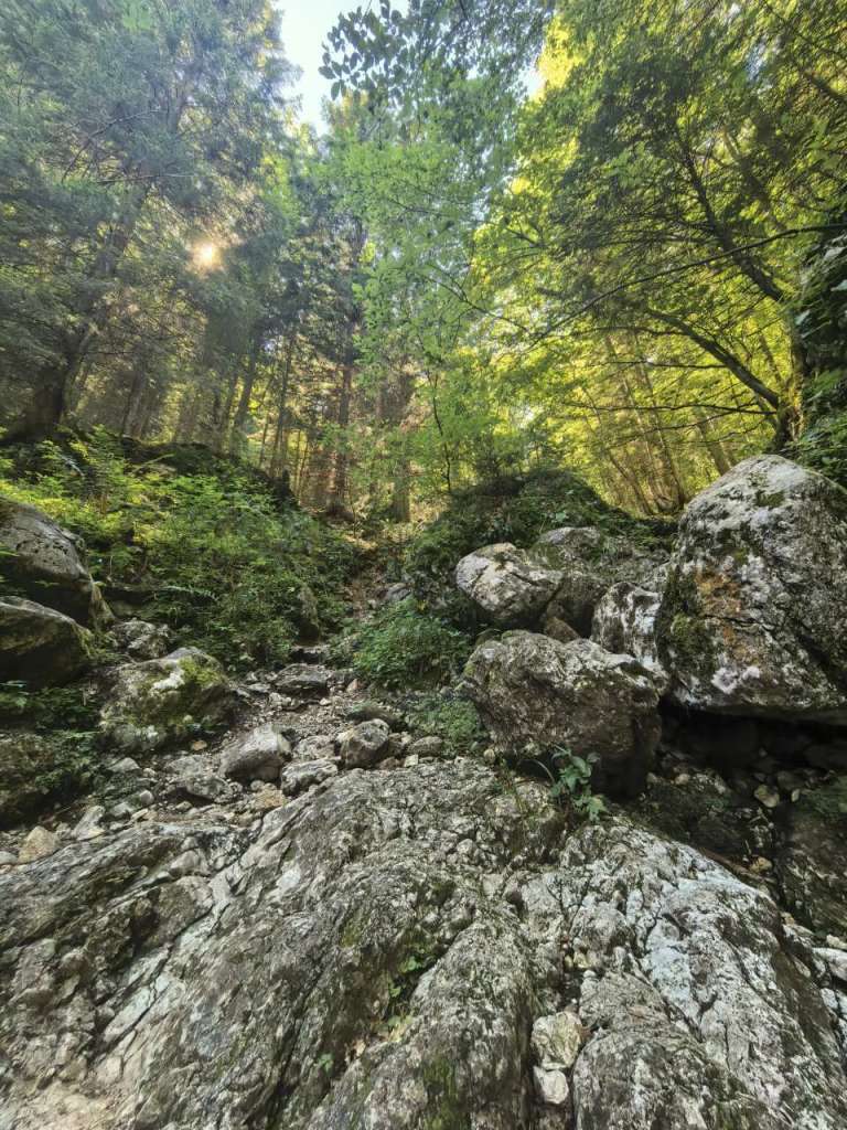 De aici cărarea se ascute, devine tot mai abruptă, apar bolovanii, stâncile și rădăcinile copacilor, plus treceri din piatră, mai simplu sau un pic mai dificil de escaladat. Dar nimic foarte complicat sau periculos.
