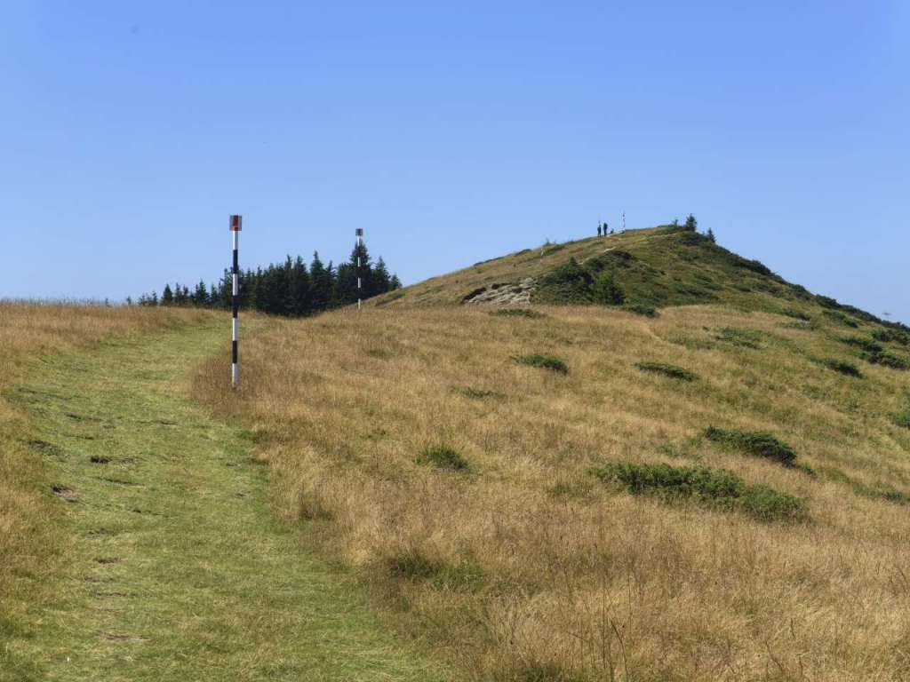 Ultimele câteva sute de metri se parcurg pe platou, încă o urcare scurtă pe final și gata… ajungi pe vârf. Unde tufele de afine erau luate la puricat de către drumeții iubitori de munte. Destule pentru toată lumea, belșug.