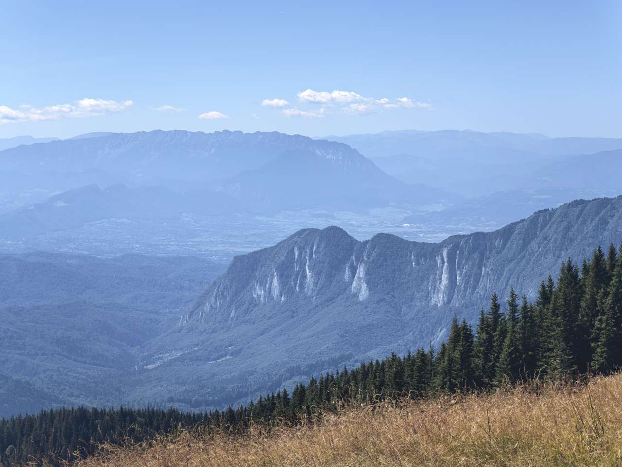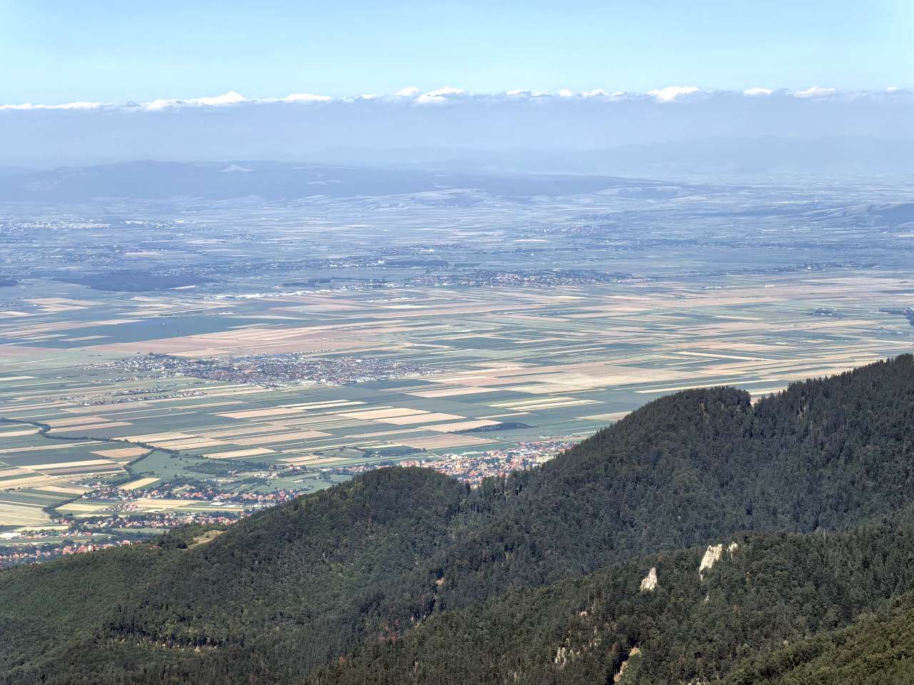 Ajunși pe platou, parcă s-a șters cu buretele tot efortul depus, imediat ce am privit în zare la panoramele ce se deschid jur-împrejur. Bucegii, Baiului, Piatra Craiului, Ciucașul în partea cealaltă. Brașovul și toate sătucele de pe lângă acesta. Câmpurile lucrate, frumos, tare frumos. Țara Bârsei…
