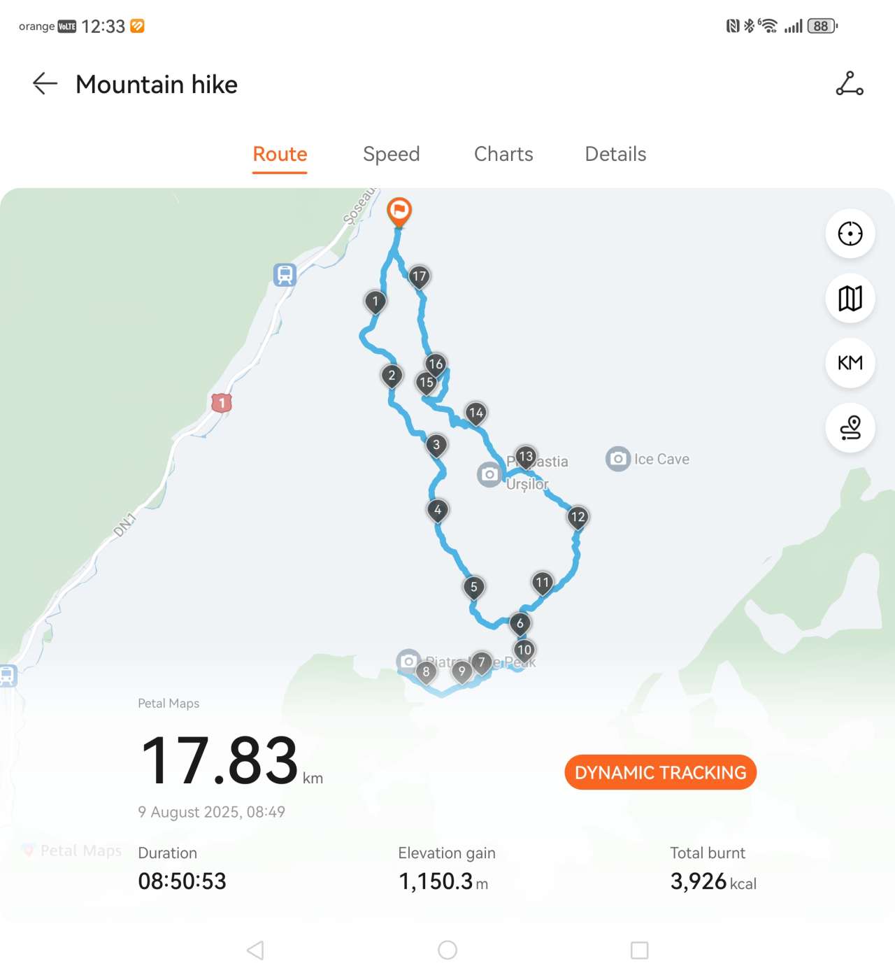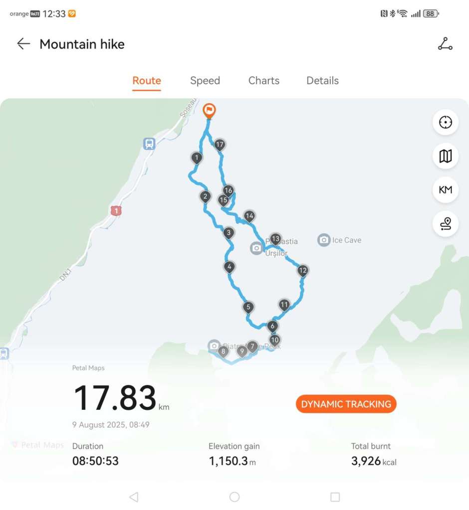 Practic, de jos și până sus, cu tot cu pauze, am făcut 5 ore și 30 de minute.