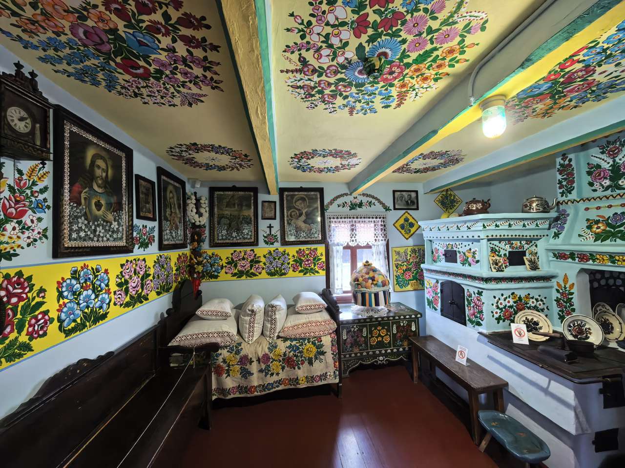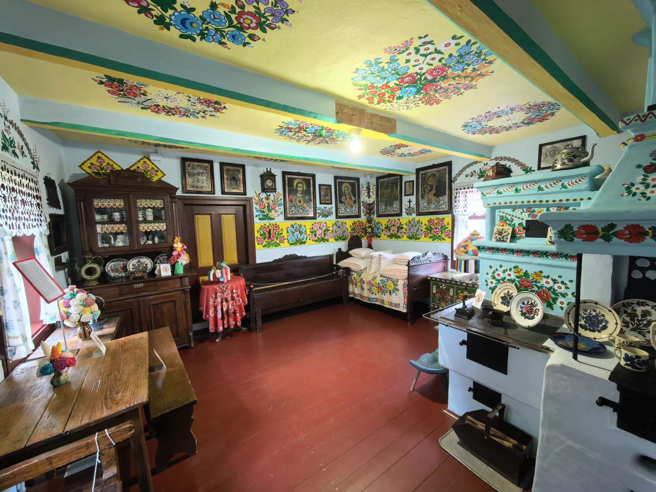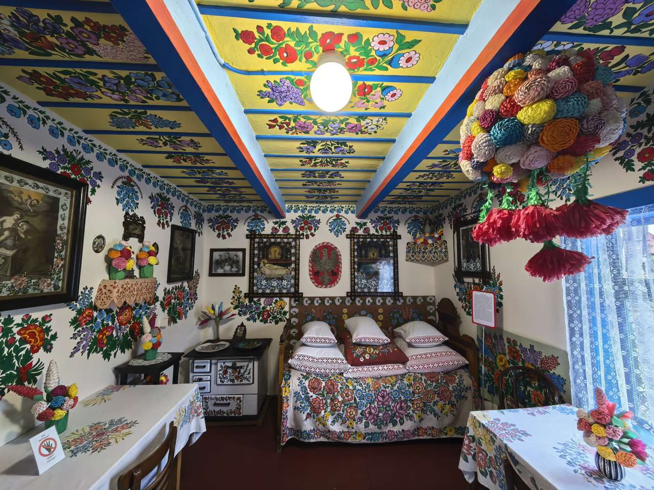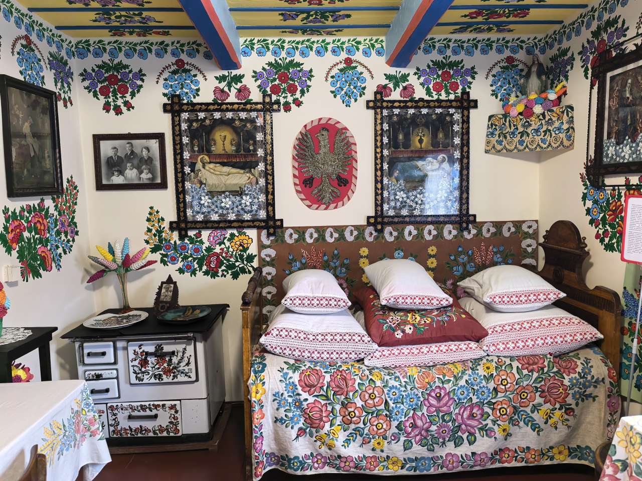 În ciuda orelor destul de înaintate la sosirea noastră, am avut noroc să prindem ultimul tur și să vizităm casa Feliciei Curyło (1904-1974), promotoarea acestei arte populare unice, cu ornamente florale. Căsuță care s-a păstrat în aceeași formă ca în timpul vieții artistei.