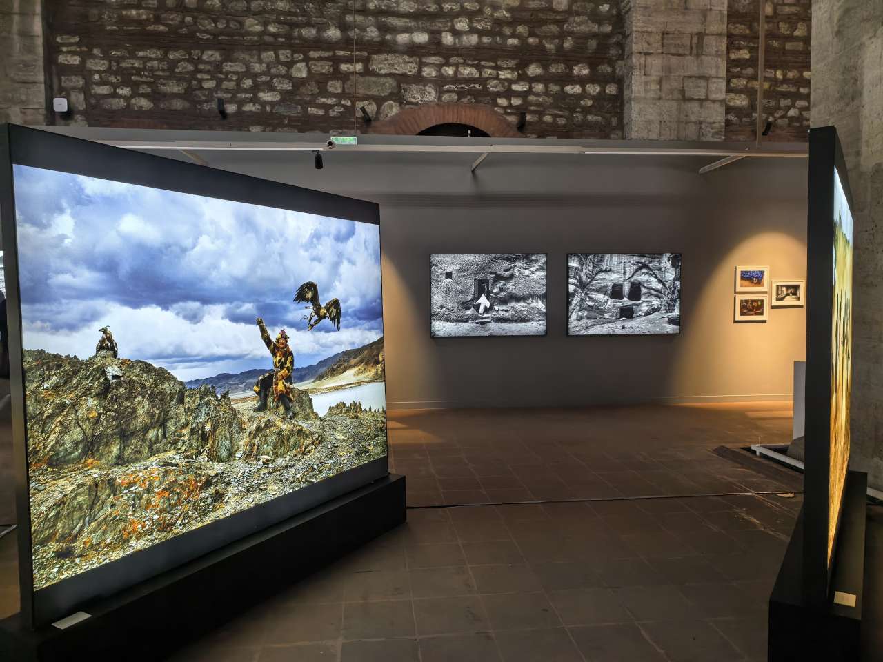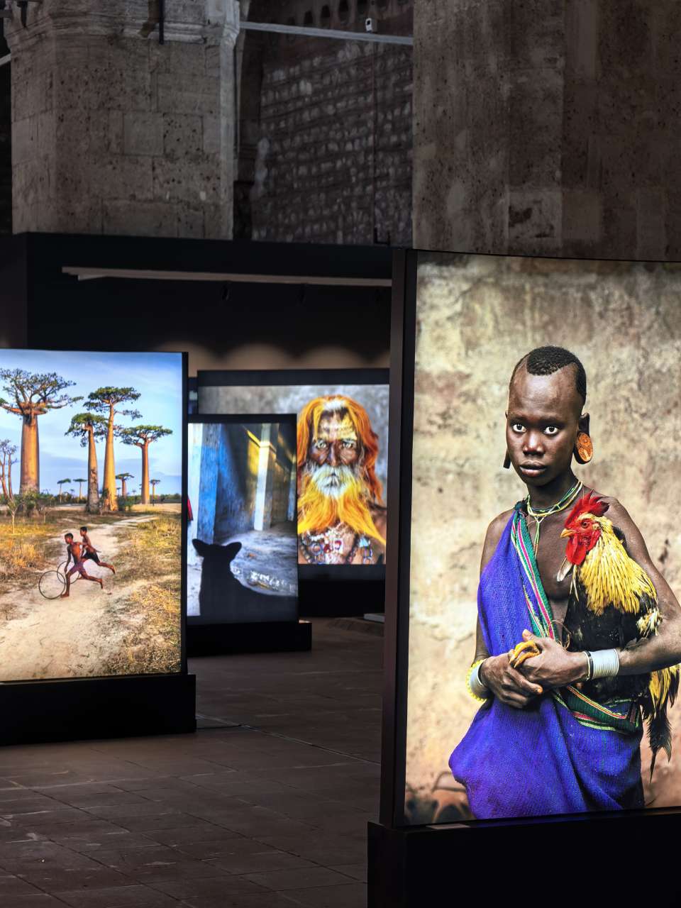 Majoritatea imaginilor sunt expuse în casete luminoase cu diagonale generoase, ca și cum ar fi imense diapozitive, pentru a le putea admira la adevărata lor splendoare.