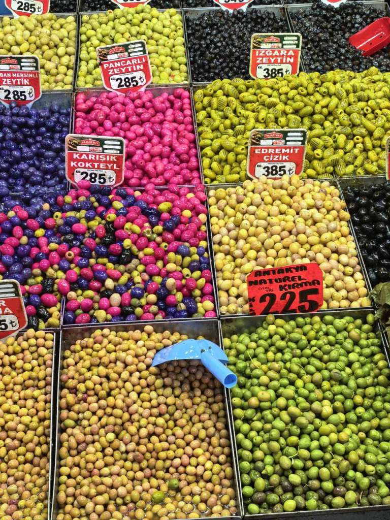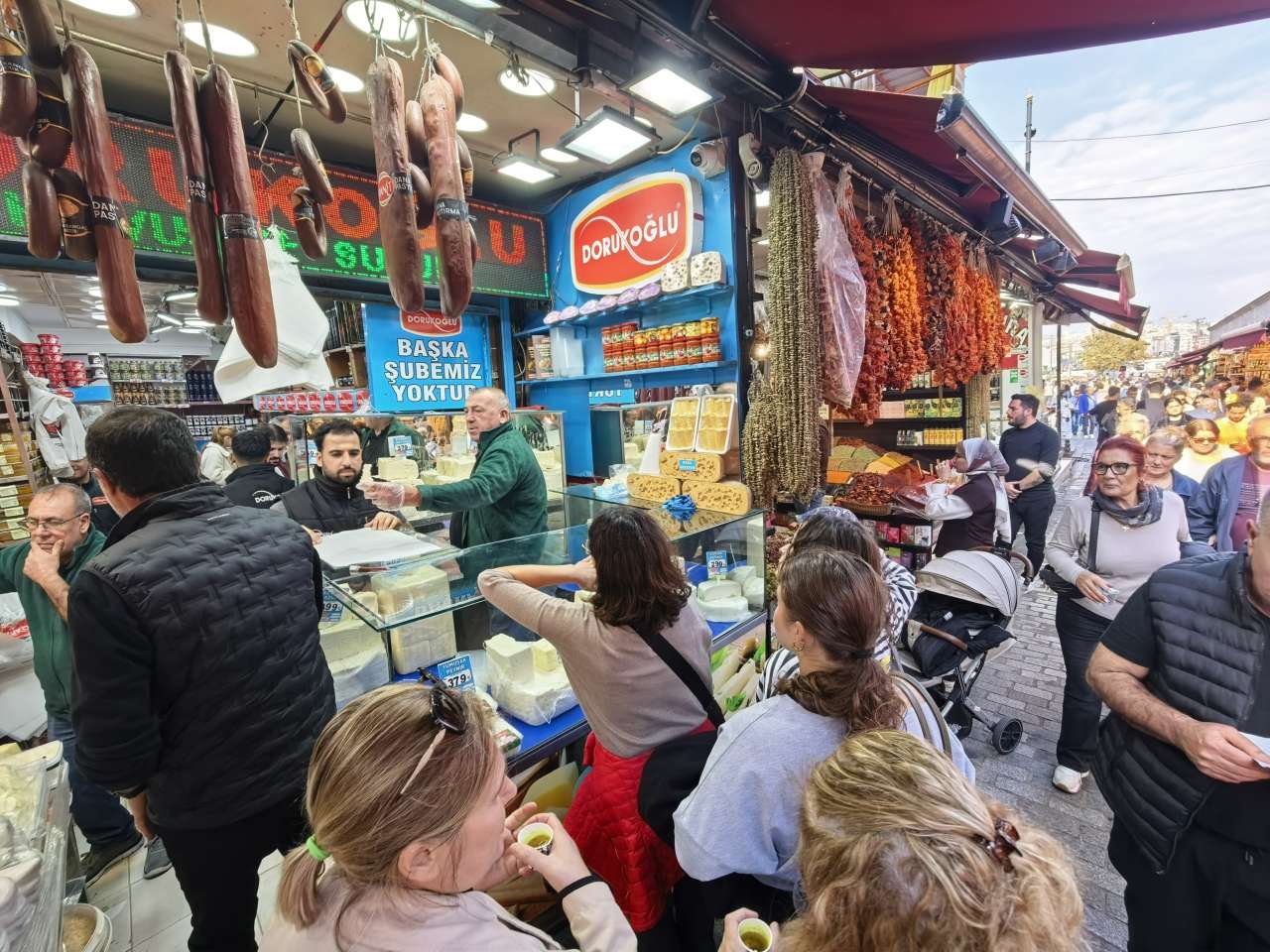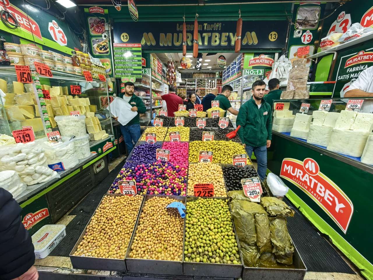Ajuns lângă el, a început spectacolul. M-au luat în primire tarabele cu brânzeturi, mezeluri, măsline și ulei de măsline, baclave, rahat turcesc și alte dulcegării, unde am constatat că prețurile parcă sunt mai mici decât la noi. Sau comparabile, brânzeturile m-au interesat în mod special, pentru că au turcii ăștia niște varietăți de brânză și de cașcavaluri excelente. Chiar mai cumpărăm acasă când găsim pe la băcăniile lor. De luat de acolo și transportat pe avion, nu era cazul acum.