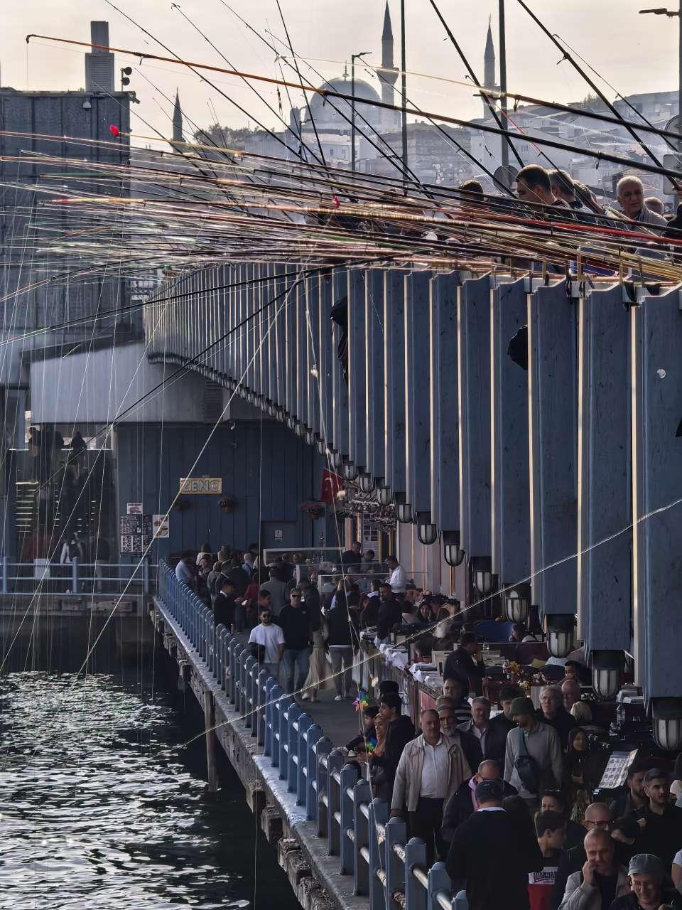 Unii prind pește pentru vânzare, direct acolo pe pod către clienți sau restaurantelor de dedesubt, alții pentru propriul consum îl duc acasă, ba sunt și unii care stau acolo de plăcere, după cum mi s-a destăinuit un localnic. Pește divers, hamsii, dorade, stavrizi, macrou ba chiar am văzut și niște zărgan (cel puțin asta cred că era peștele ăla silfid).
