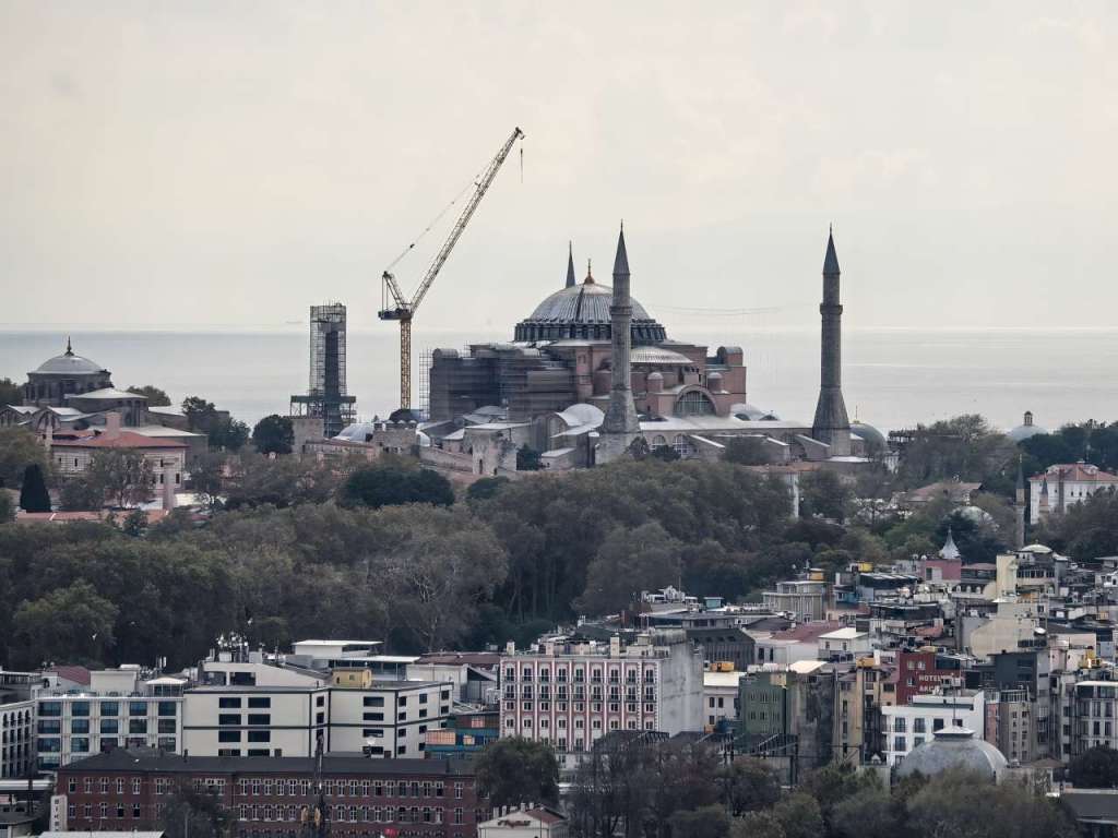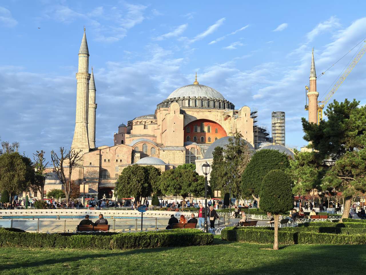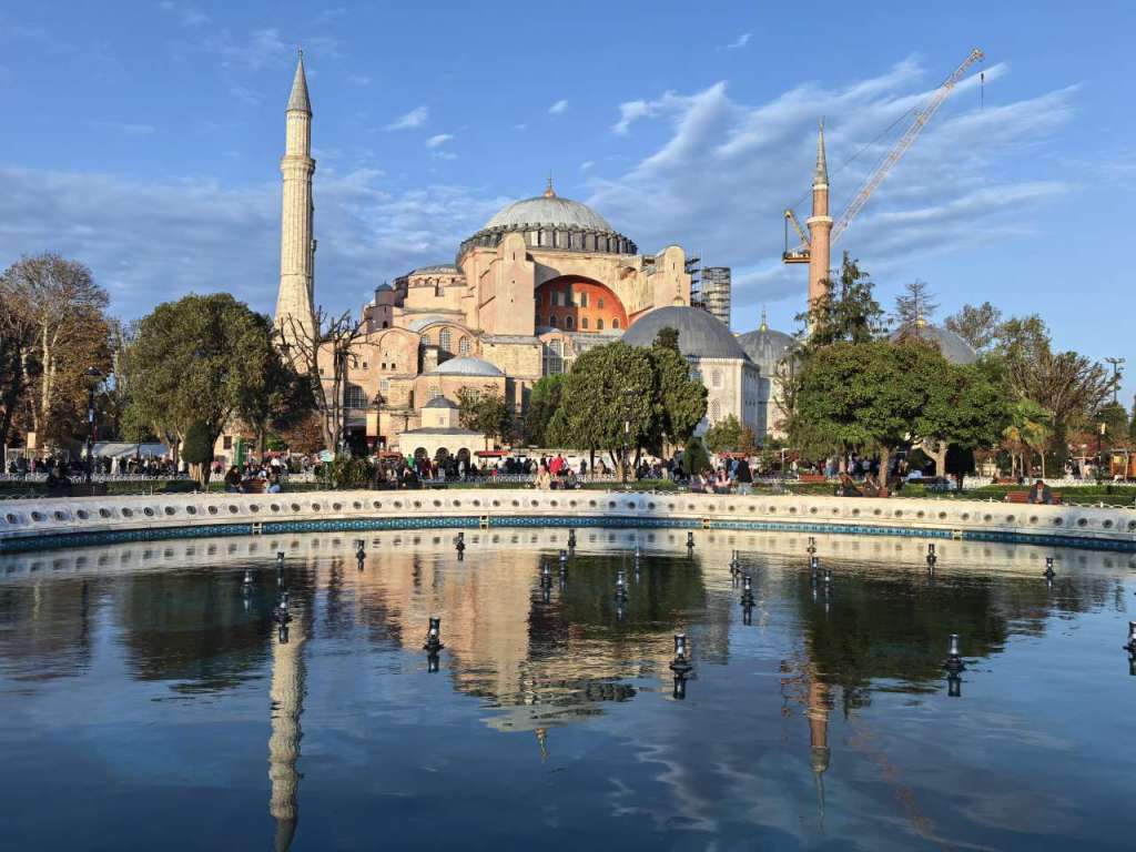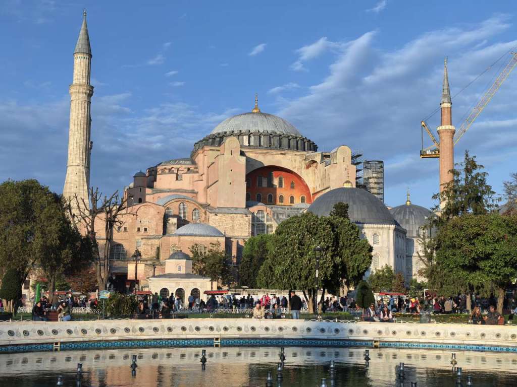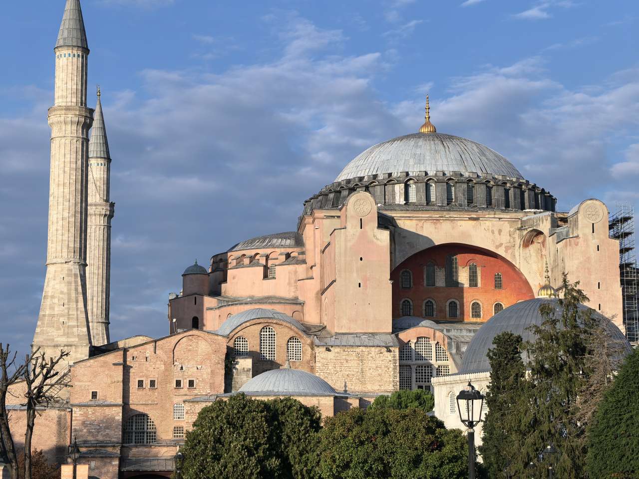 Cea mai mare biserică creștină din lume timp de 1000 de ani, până la Cucerire, a fost construită în anul 537d.Hr la cererea împăratului Iustinian I. După cucerirea Constantinopolului în 1453, Mehmet al II-lea Fatih a transformat-o în moschee. În 1935, sub Atatürk, a devenit muzeu. Din 2020 este moschee activă, fiind totuși permis accesul turiștilor în afara orelor de rugăciune.