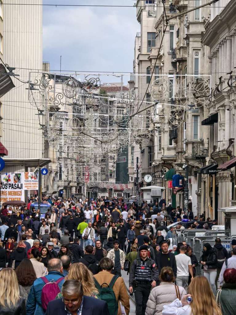 Am luat-o în sus pe bulevardele largi ticsite de localnici și mai ales de turiști, mulți dintre ei deșertați de cele trei vase de croazieră ancorate în Galataport, pe trotuarele strâmte și neîncăpatoare, atent în permanență la tramvaiele care trec regulat, cu precizie elvețiană, dar care claxonează în permanență pentru a-i atenționa pe neatenți.