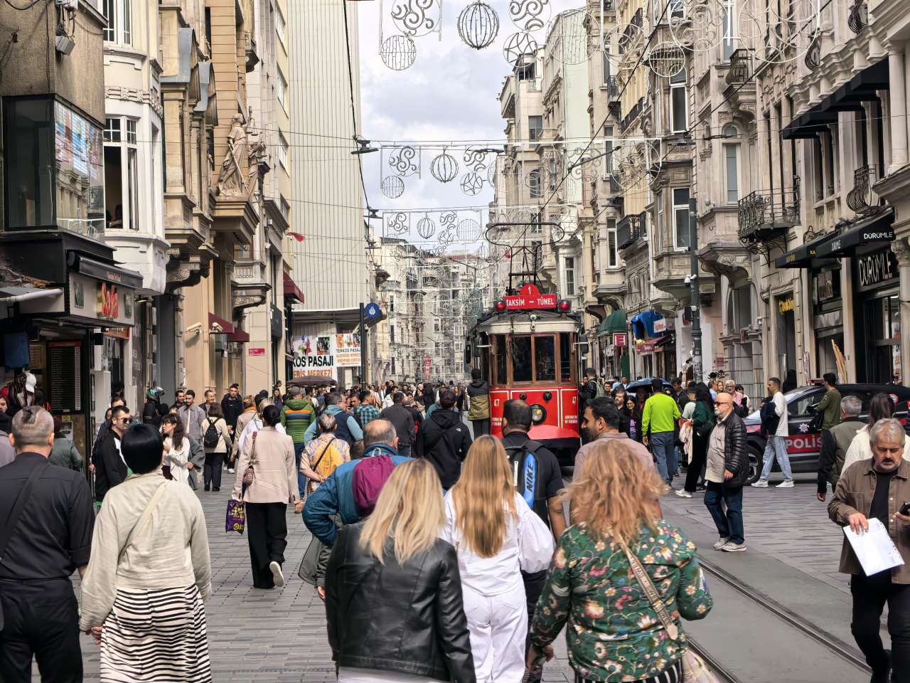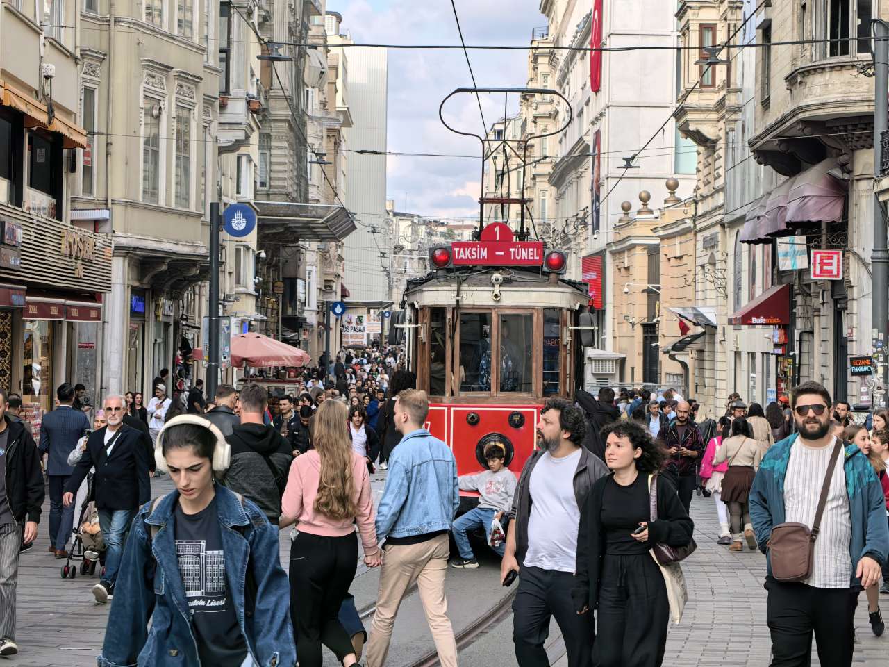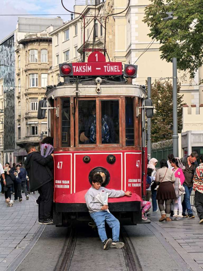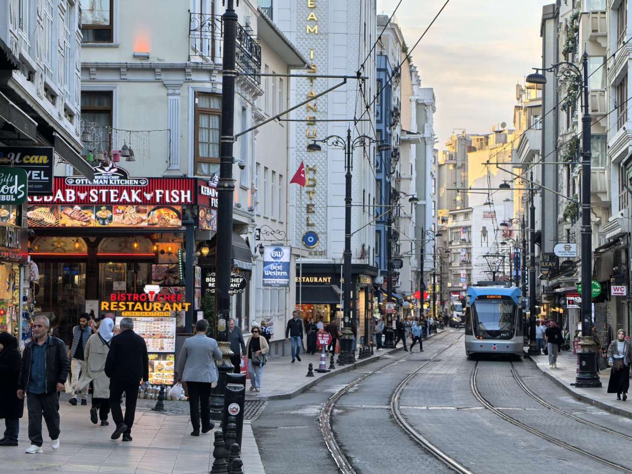 De la turn am plecat în sus către strada Istiklal, unde am dat, din nou, piept cu mulțimea. Furnicar în toată regula, vestitul tramvai roșu reușind, cumva, să se strecoare practic printre oameni.