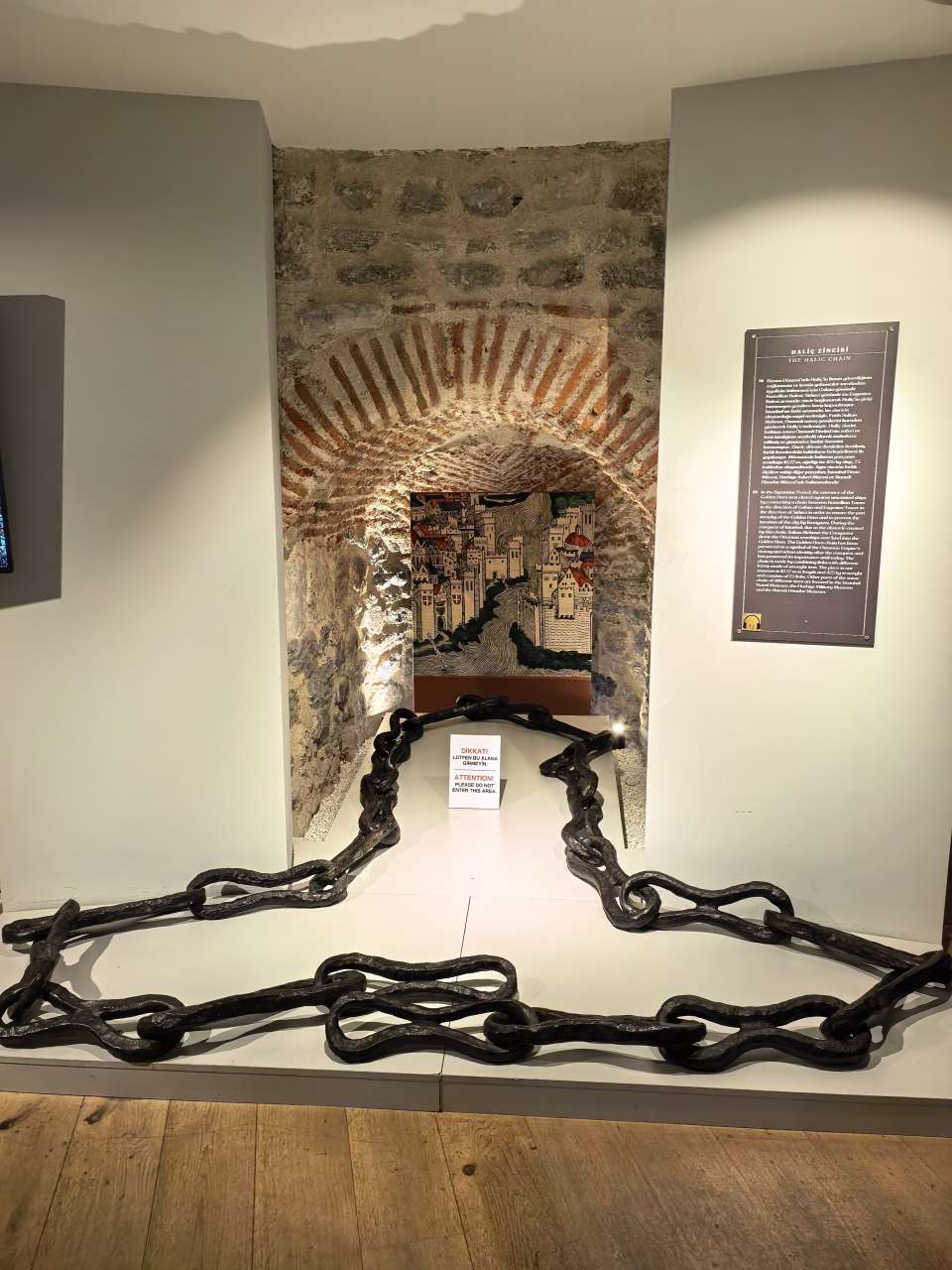 Dacă nu trăgeau confrații de plimbare de mine, nu m-aș mai fi dat plecat de acolo. Aș fi zăbovit până la apus, ca să-l admir de acolo, de sus. Cred că e frumos. De răsărit nu poate fi vorba, pentru că se deschide la 8.30 de dimineață. Am văzut și o bucată din lanțul care proteja portul în perioada bizantină.